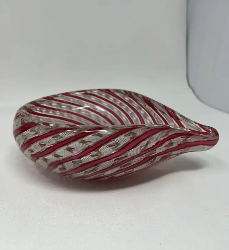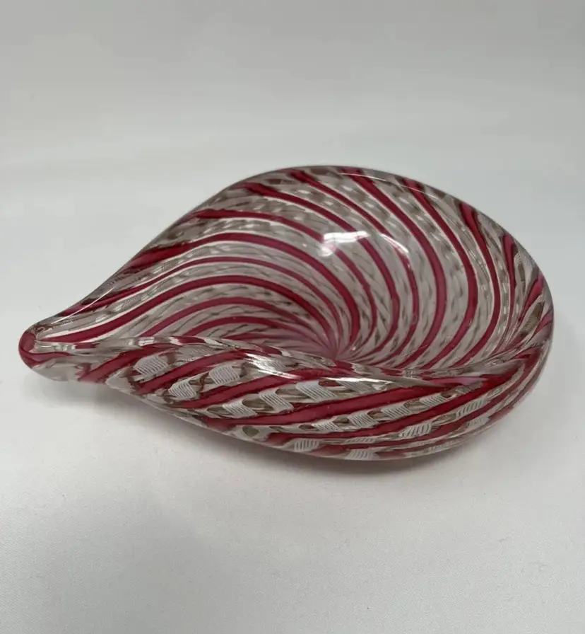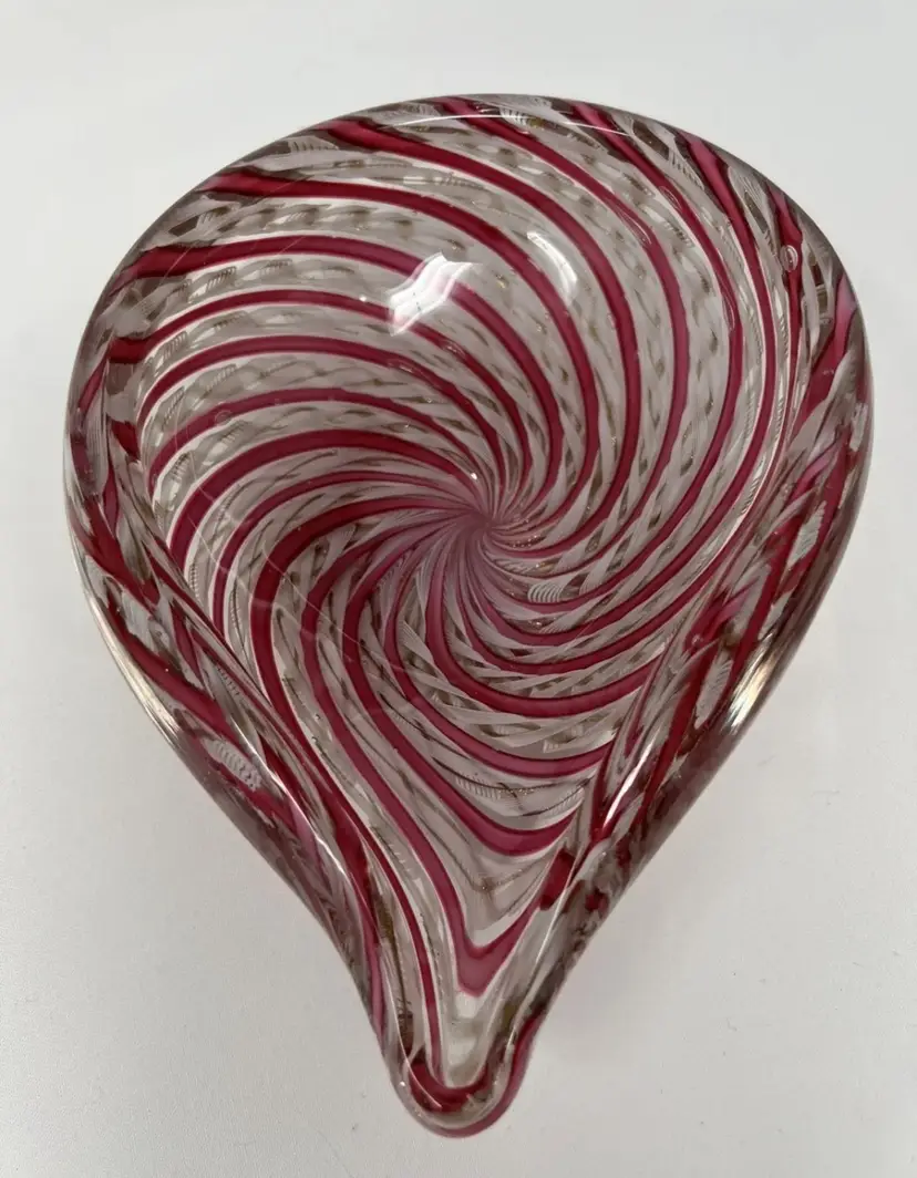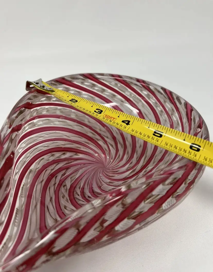 Murano Glass Fratelli Toso Bowl Cranberry Pink White Zanfirico Aventurine Swirl