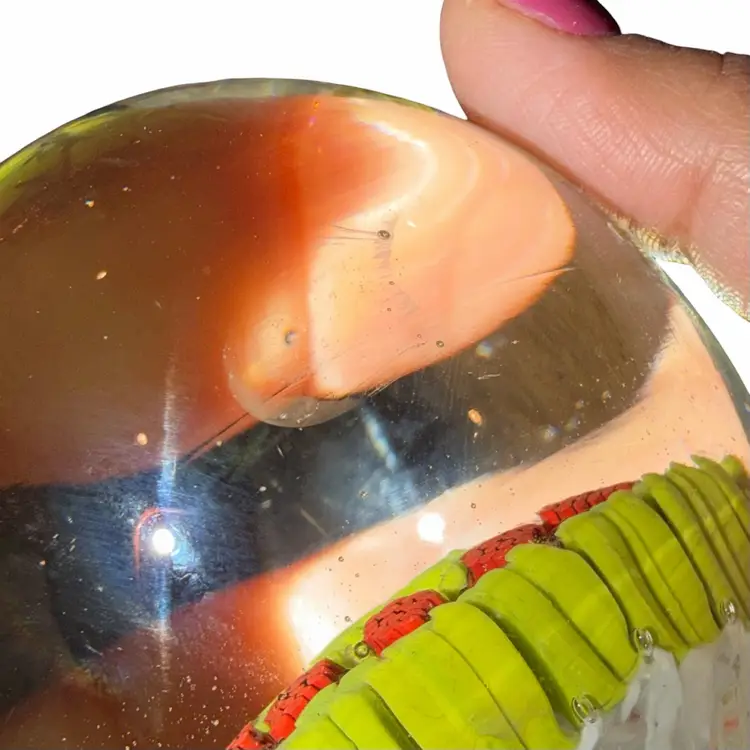 ✨ No chips or cracks ✨ Slight surface scratches on bottom from age/use ✨ One internal production inclusion (see photo) — a natural and common characteristic in older Murano paperweights ✨ Displays beautifully