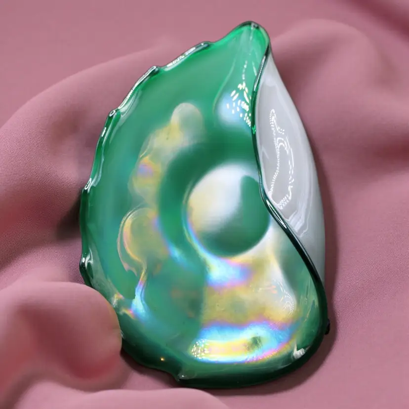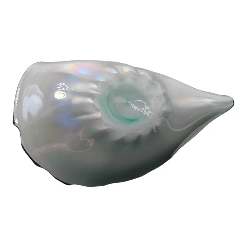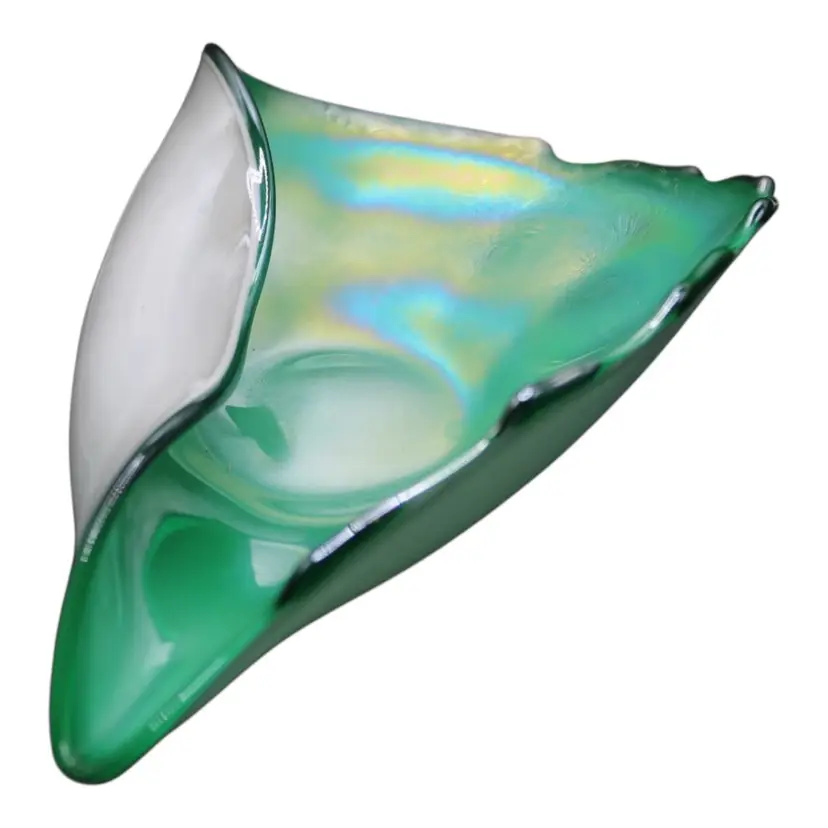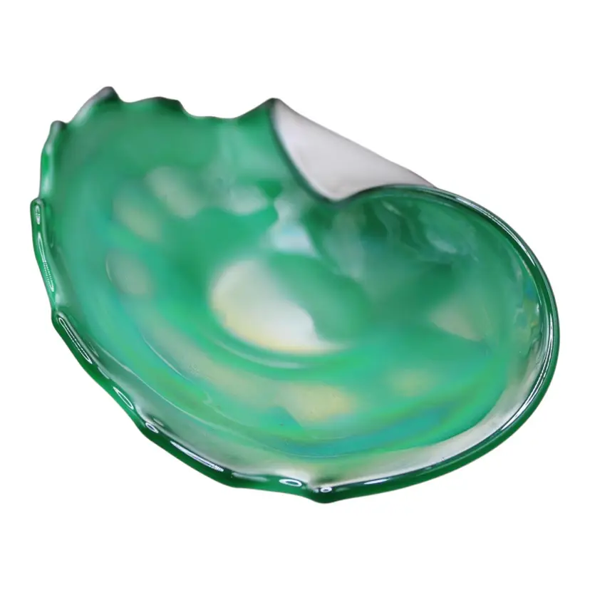 Murano Iridescent Sommerso Shell Dish Cased Opaline & Emerald Green Art Glass Mid Century Italian Bowl Lustre Finish 8 1/4”x4 1/2”. No chips or cracks.