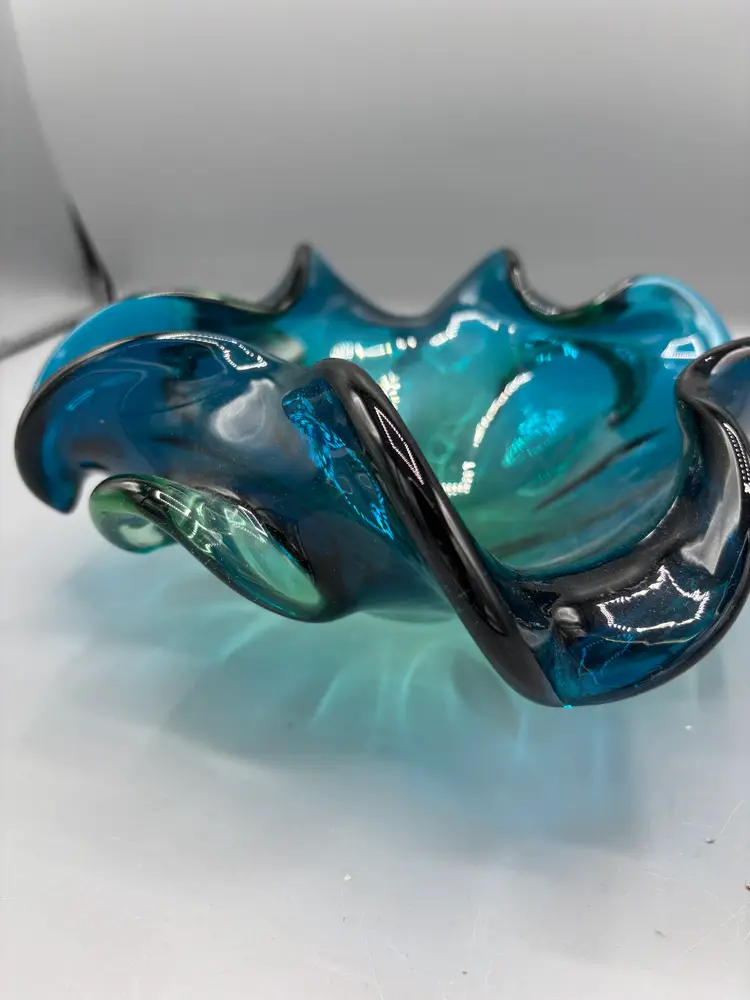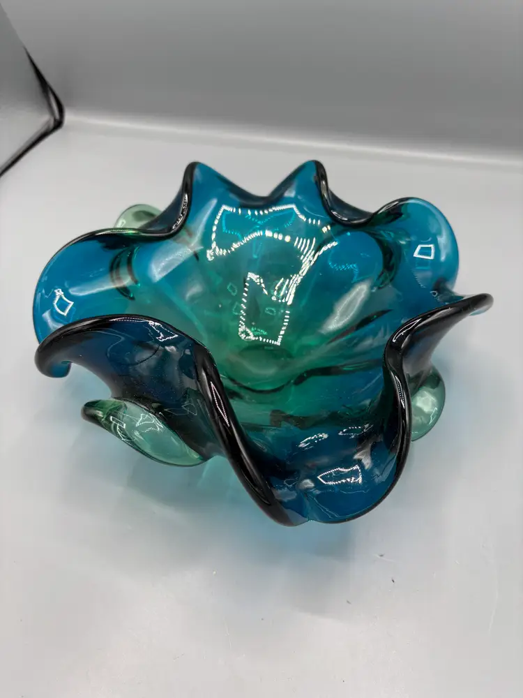 Murano Jade fluted dish that would fabulous in any beach cottage decor! This is a heavy thick bowl that will last. Please refer to pictures to admire this bowl. This shows no damages.