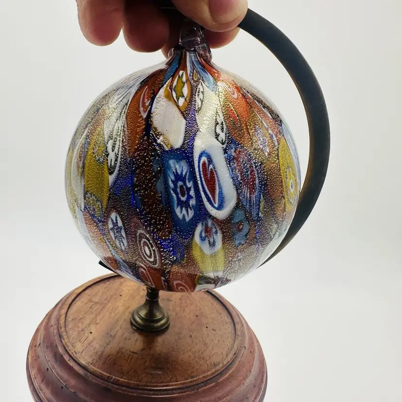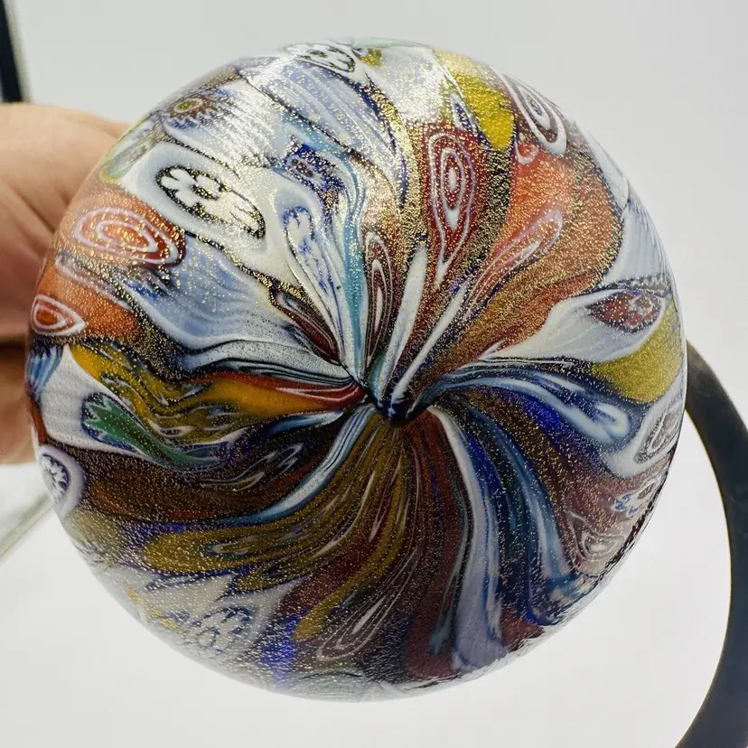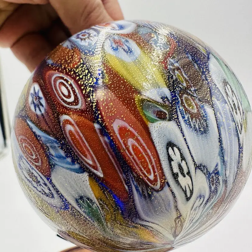 Features: Decorative Handmade: Yes Pattern: Millefiori Time Period Manufactured: 1950-1959 Production Technique: Millefiori Item Length: 6.5 in Item Height: 6.5 in Subject: Abstract Art Vintage: Yes Country/Region of Manufacture: Italy Origin: Venice Material: Glass Finish: Glossy Production Style: Art Glass Brand: Murano Style: Mid-Century Modern Antique: No Color: Multicolor Original/Licensed Reproduction: Original Backstamp: Incised Theme: Italian Type: Globe Ornament