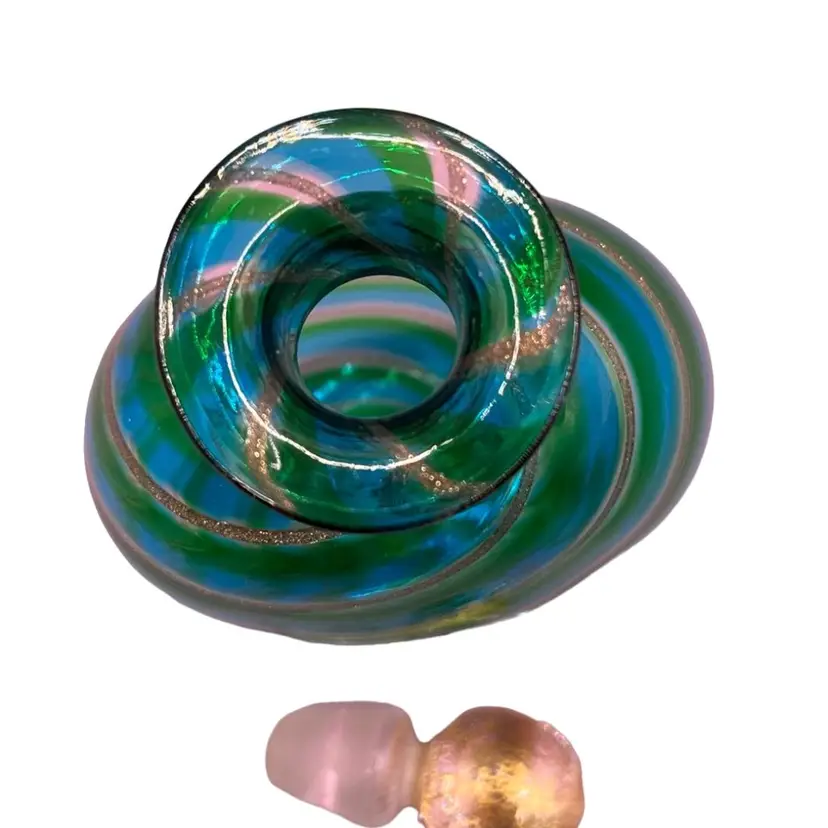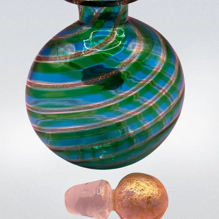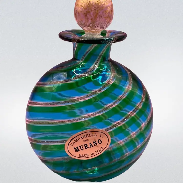 Murano Campanella L. perfume bottle with dauber. Original tag. No chips or cracks on bottle, minor chip on dauber (see picture).