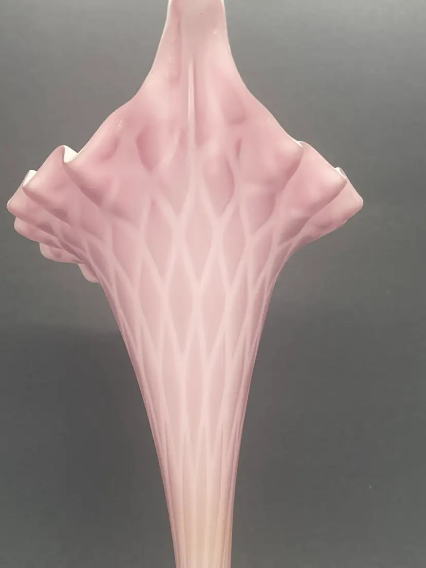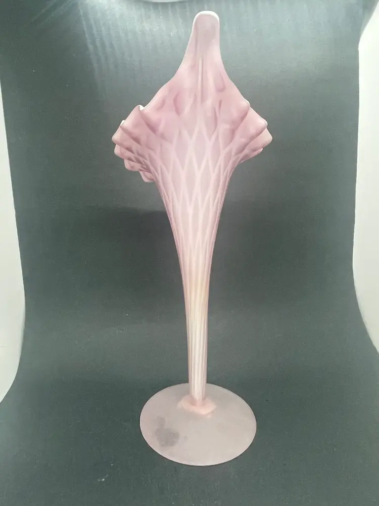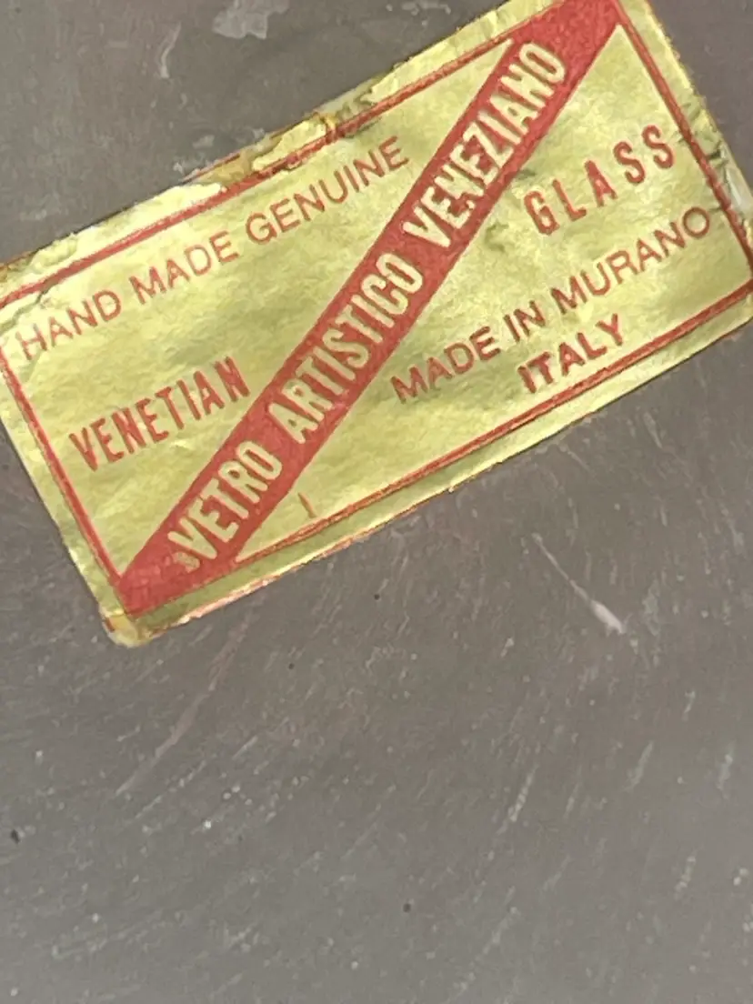 Rare and hard to found Murano glass vase with original label. Stands roughly 11.5” tall
