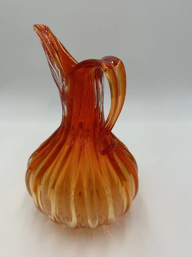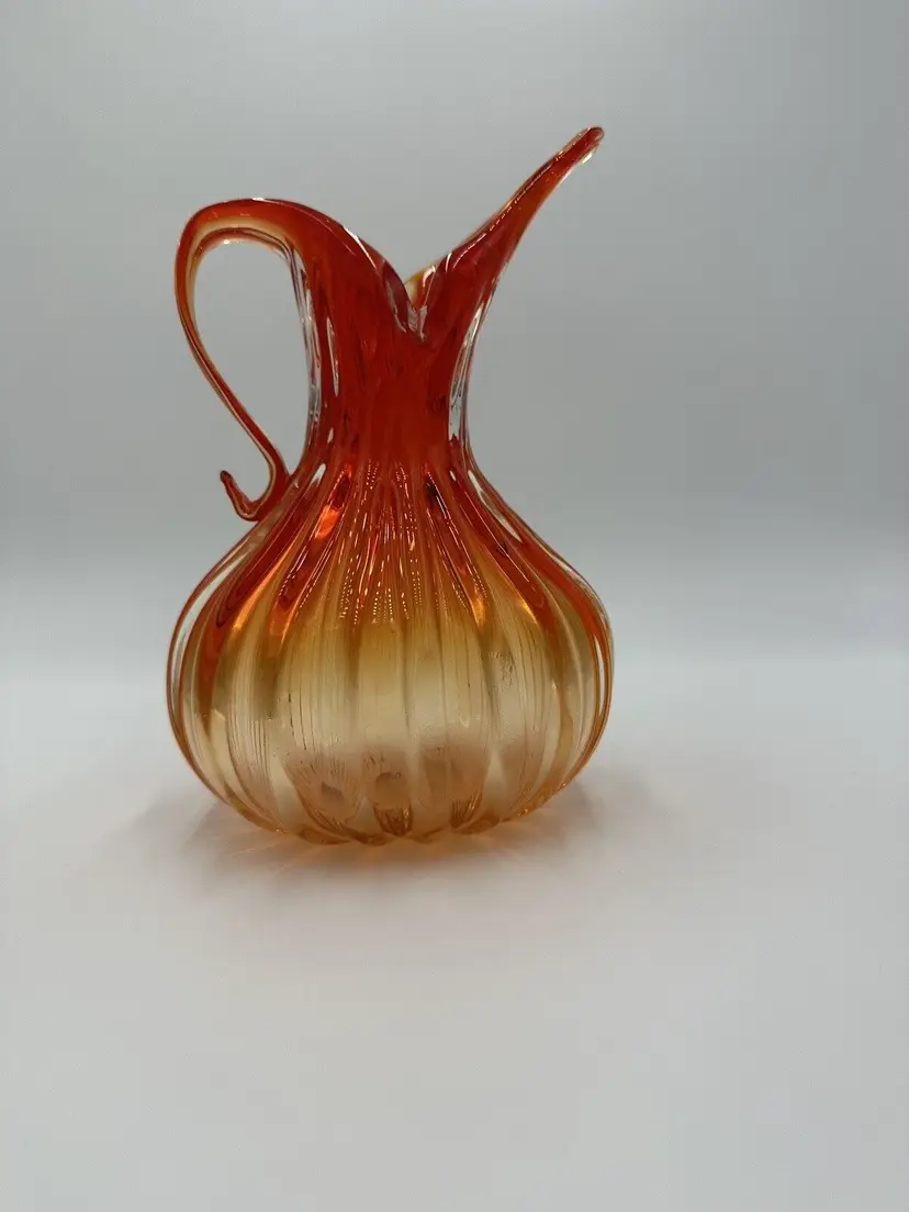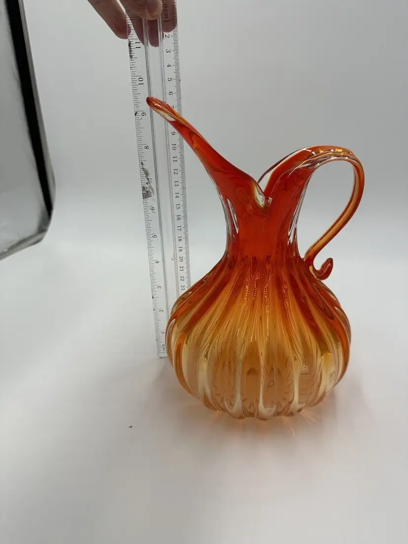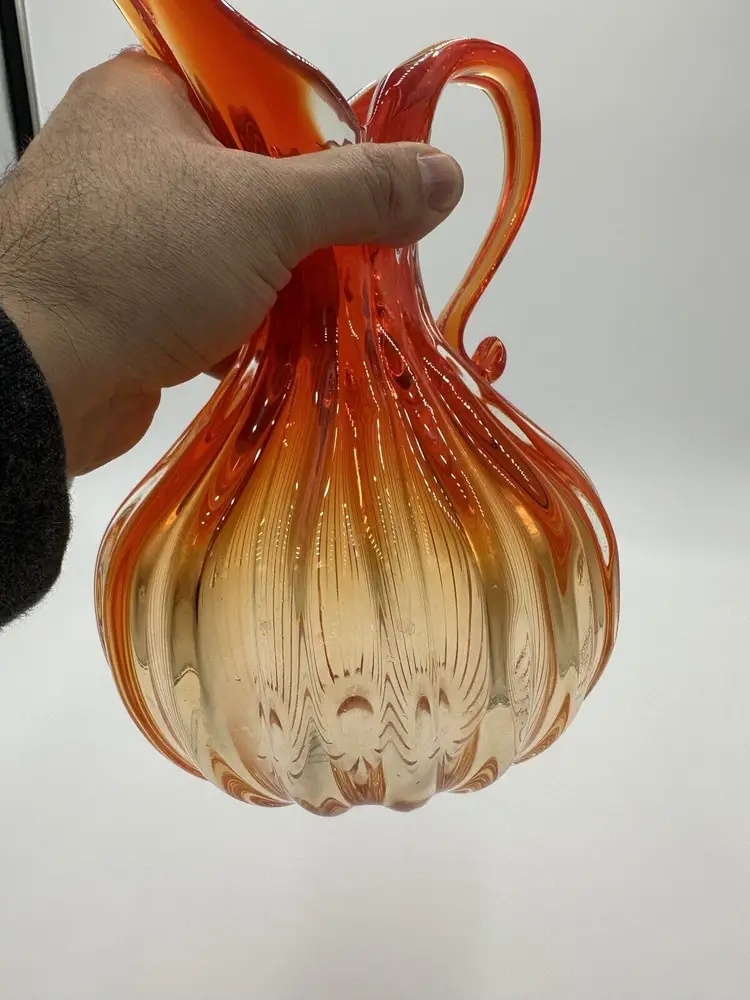 Features: Decorative Item Width: 7 in Production Technique: Hand Blown Glass Item Height: 10 in Vintage: Yes Country/Region of Manufacture: Italy Material: Glass Packaging: Unboxed Production Style: Art Glass Brand: Murano Color: Orange Original/Licensed Reproduction: Original Type: Pitcher