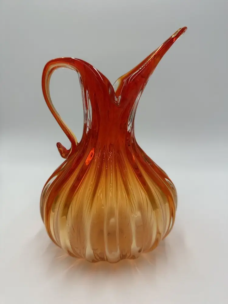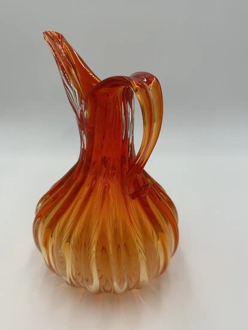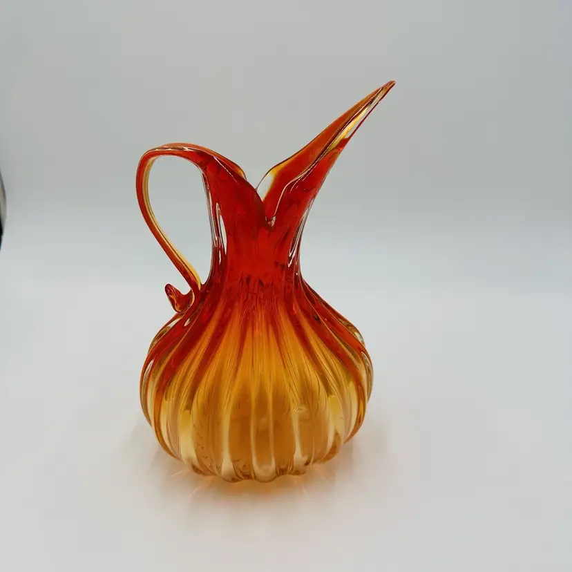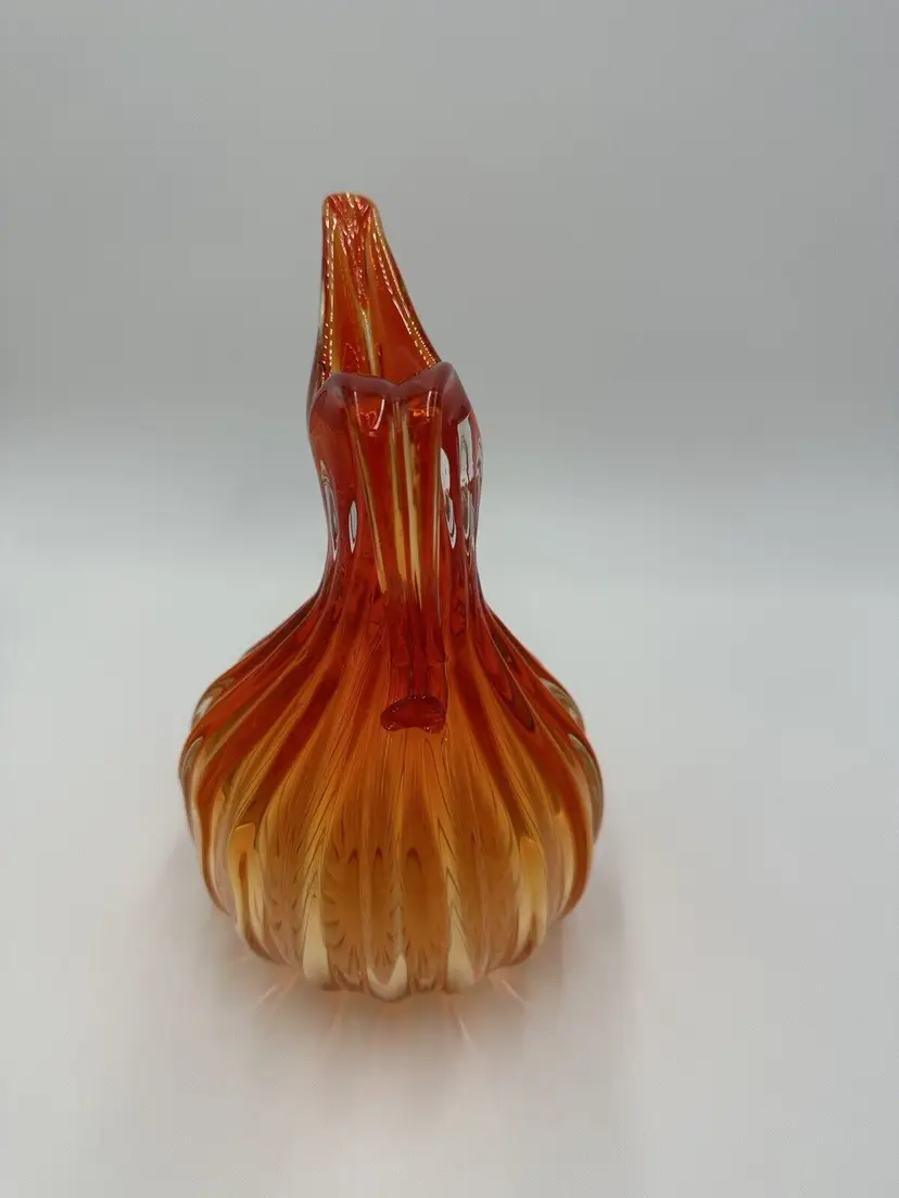 Features: Decorative Item Width: 7 in Production Technique: Hand Blown Glass Item Height: 10 in Vintage: Yes Country/Region of Manufacture: Italy Material: Glass Packaging: Unboxed Production Style: Art Glass Brand: Murano Color: Orange Original/Licensed Reproduction: Original Type: Pitcher