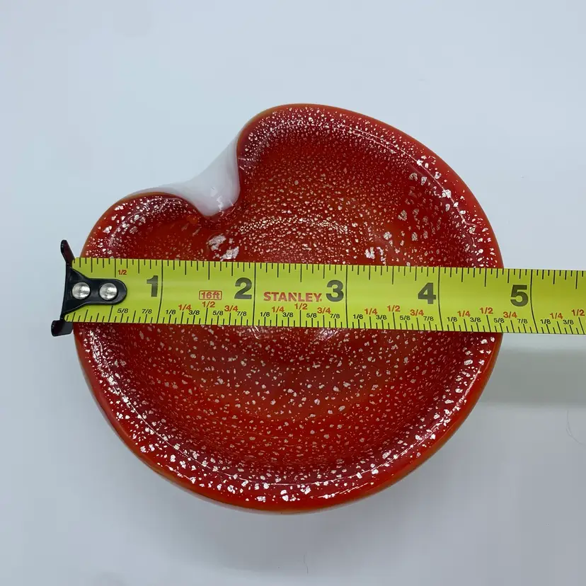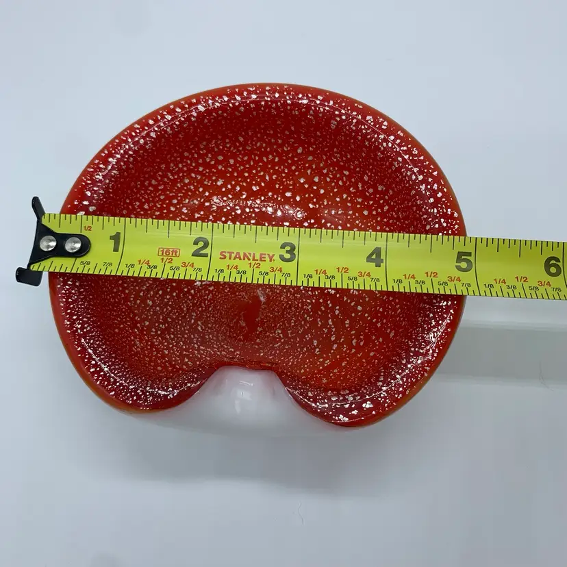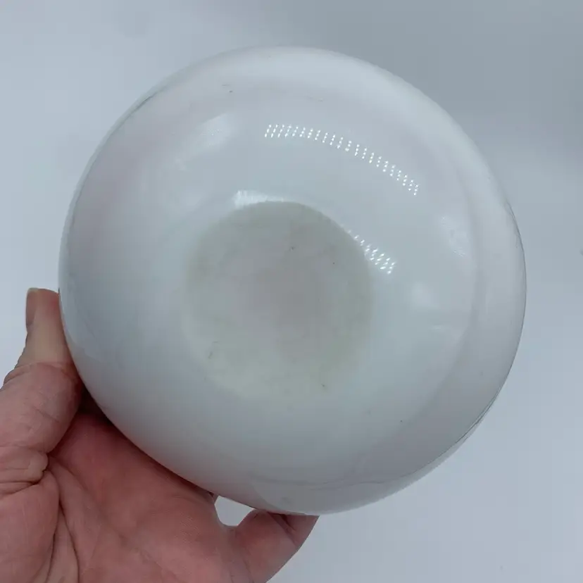 This bowl is beautiful and dainty. It measures approximately 5x5 in. There is what appears to be a superficial scratch to the underside of the bowl as pictured. No other chips or cracks!