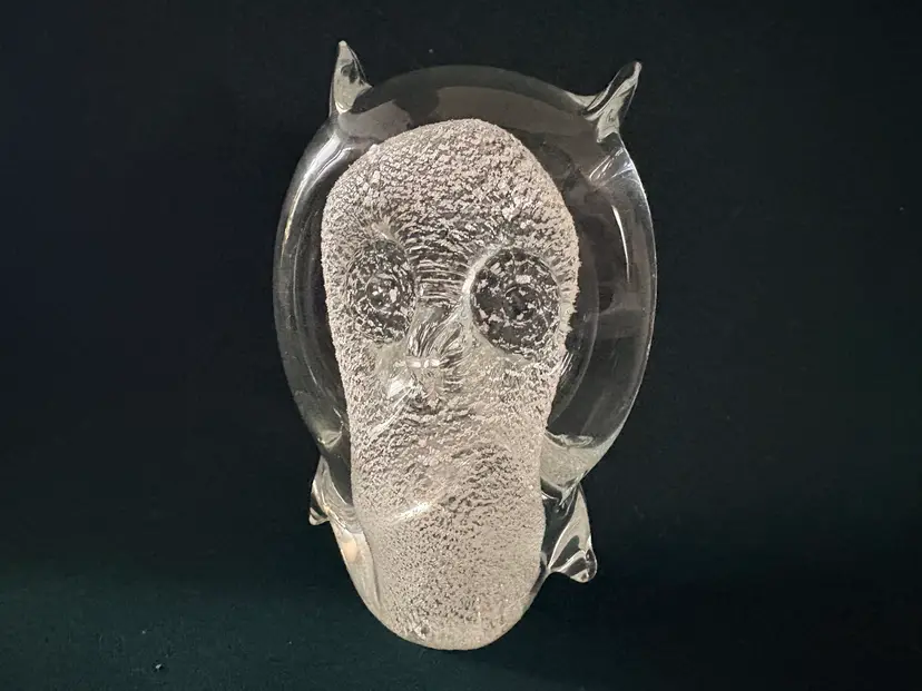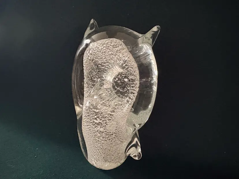 Add a touch of wisdom to your desk with this vintage glass owl paperweight. Perfect for keeping your papers in place while adding a bit of charm to your workspace.