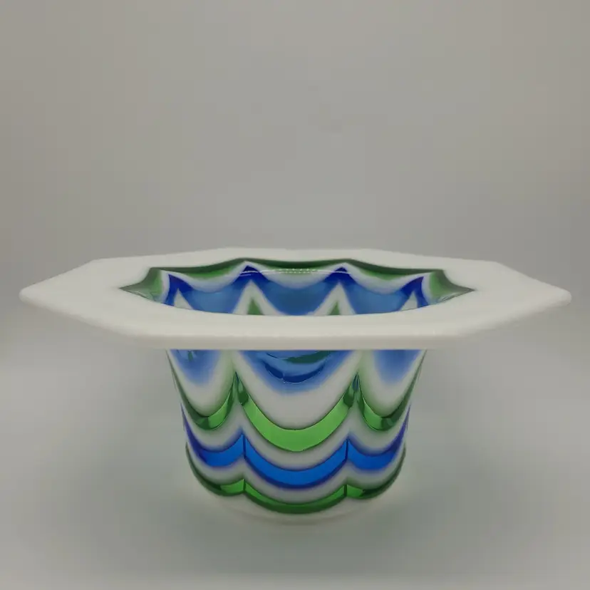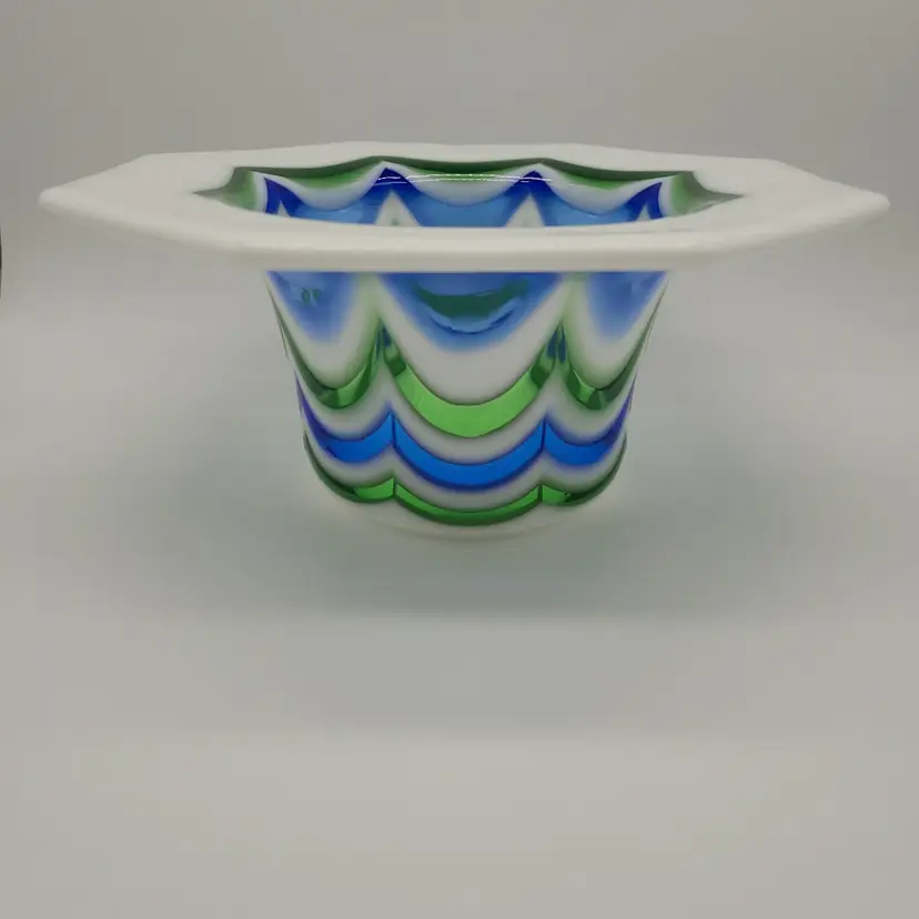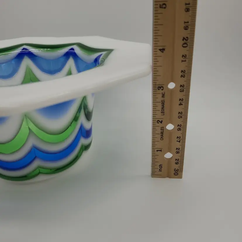 Murano-Style Hand-Blown Ocean Waves Art Glass Bowl