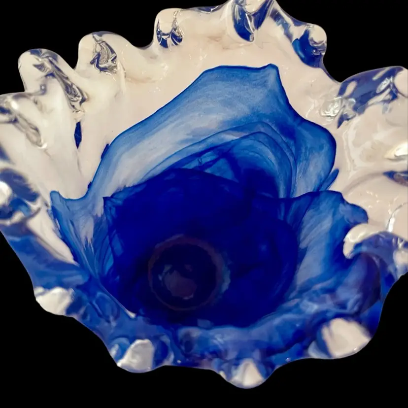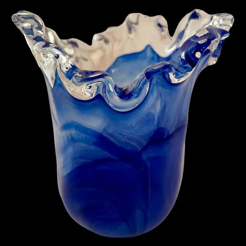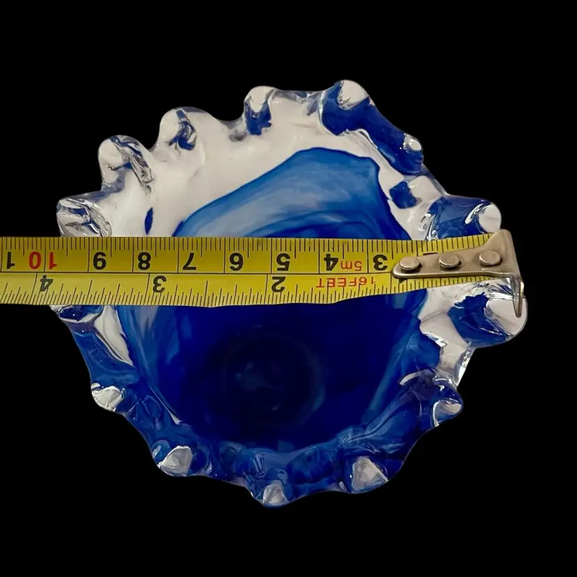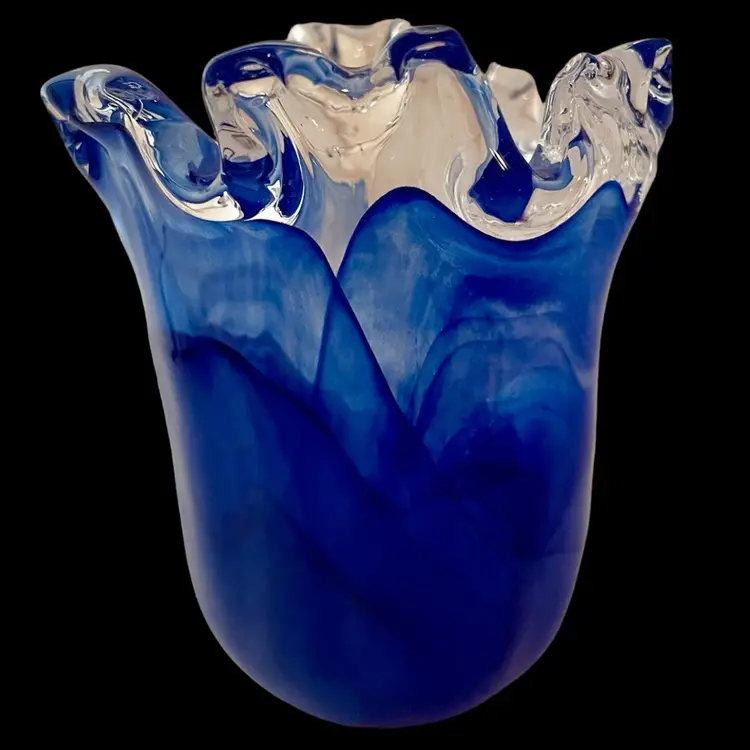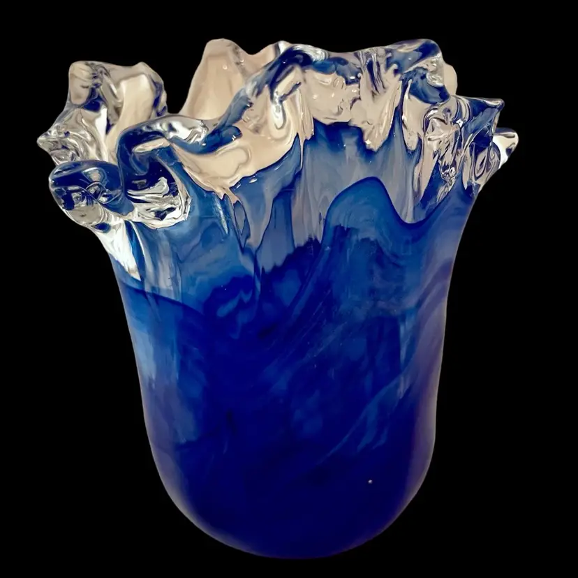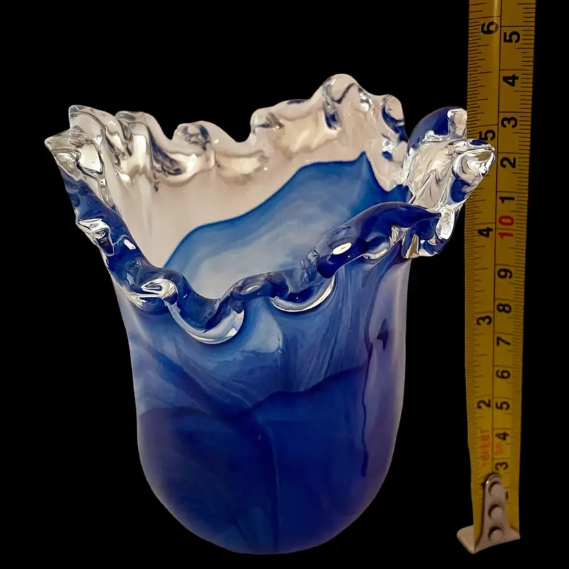 Murano White Cristal Cobalt And Clear Made In Italy Glass Vase. Condition is Used. Shipped w USPS Mail
