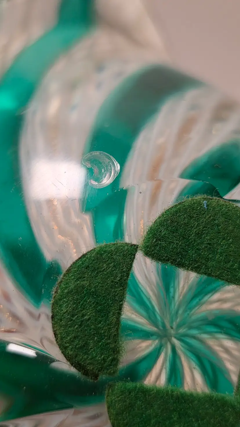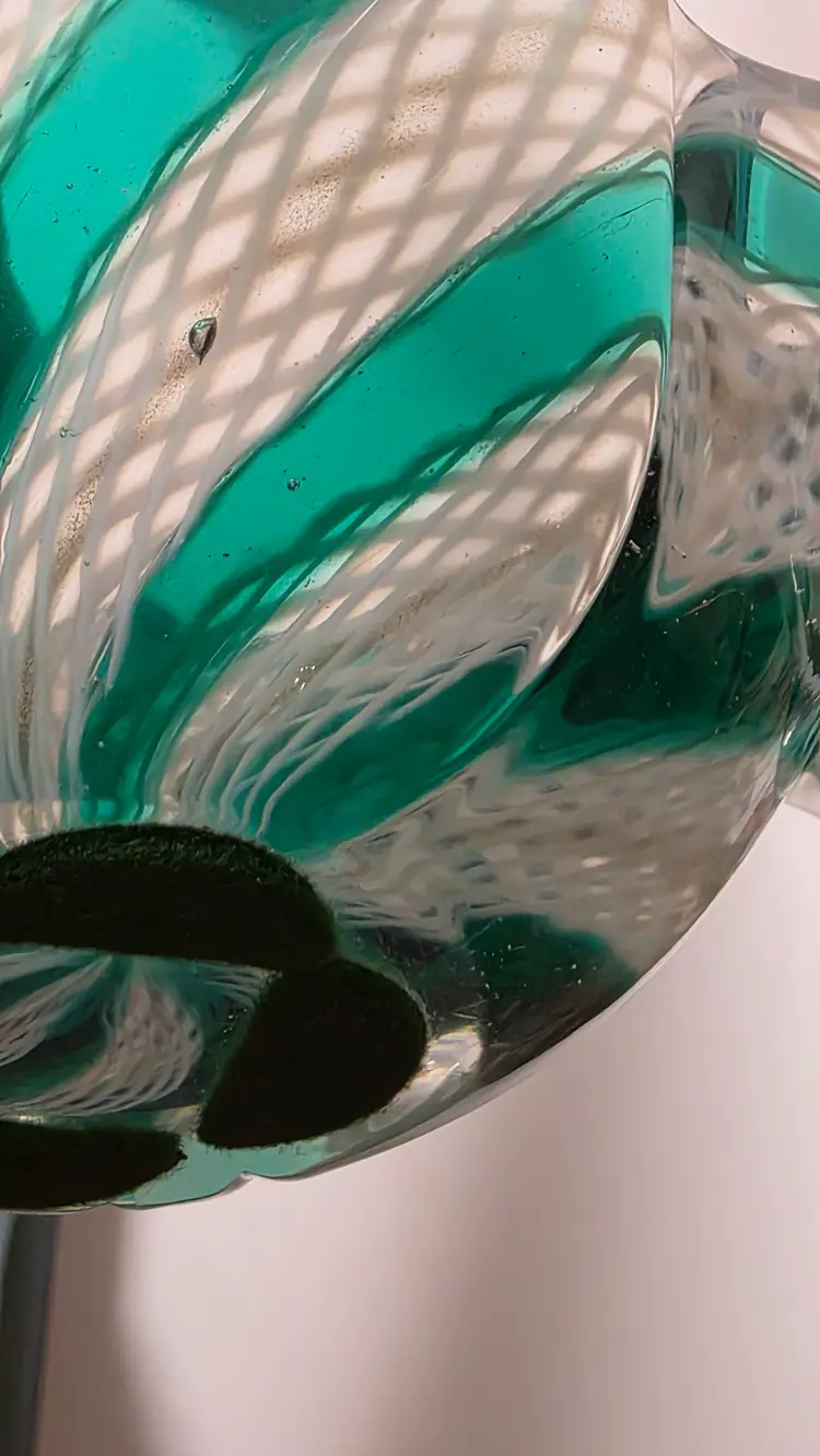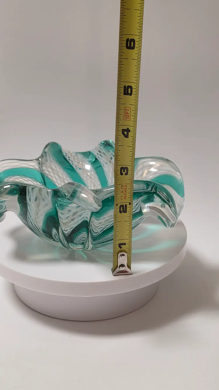 The Murano Zanfirico Latticino 3-Leaf Clover Dish Bowl features intricate green and white ribbons of glass that form a beautiful and unique design. This bowl showcases the craftsmanship and artistry of traditional Murano glassmaking. The latticino technique used in this piece creates a delicate and elegant pattern, making it a stunning addition to any glassware collection.