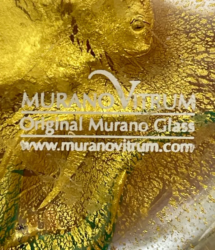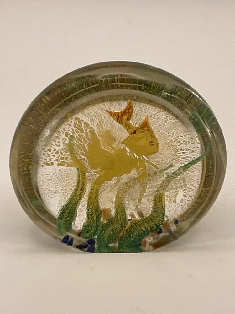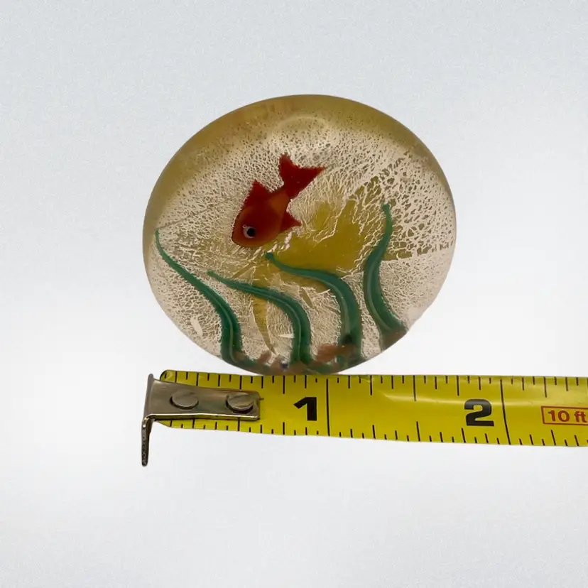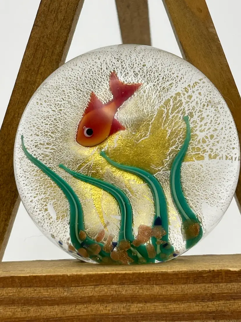 MuranoVitrum, small glass aquarium with Goldfish, gold fleck, green sea grass, 1.75” in diameter