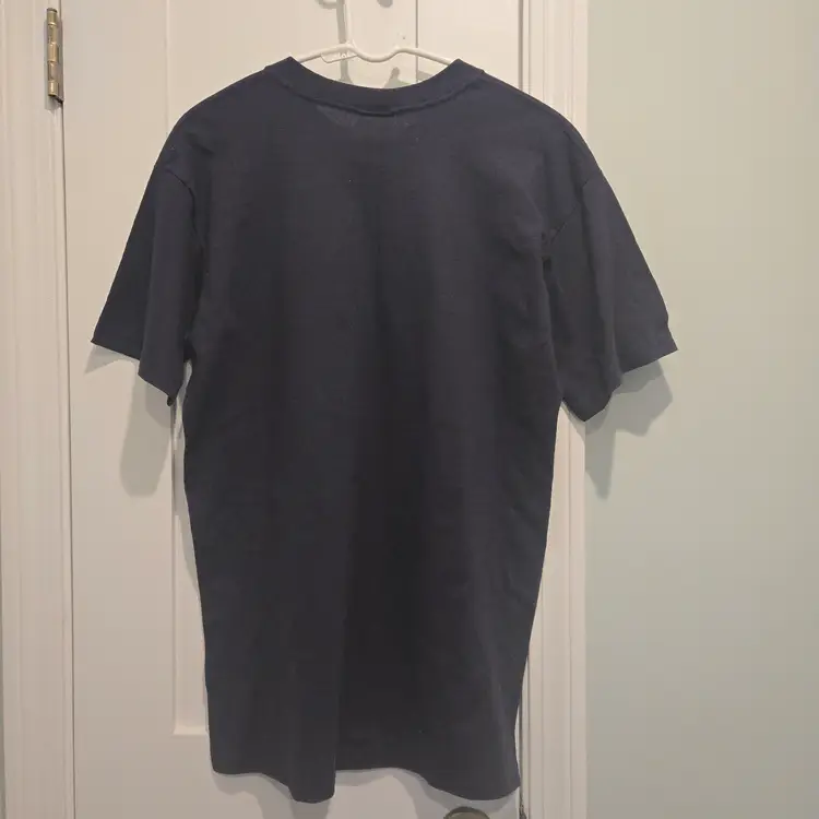 Size is Unisex Medium Color - Navy blue Chest width: approx. 20" Back length from below collar: approx. 28" Sleeve length from shoulder to hem: approx. 8" Side length from underarm to hem: approx. 20"