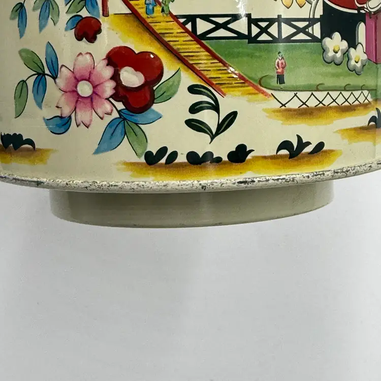 In good condition. Does not have any damage. Has normal age wear and minor scratches. Measures 6 1/4 inches tall and 4 3/4 inches in diameter