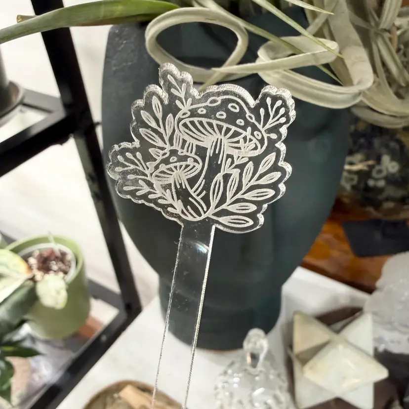 Details: 🪴 9” tall and 1/8” thick 🪴 3-pack includes one of each design 🪴 .2” wide stem 🪴100% clear cast acrylic