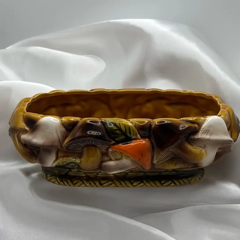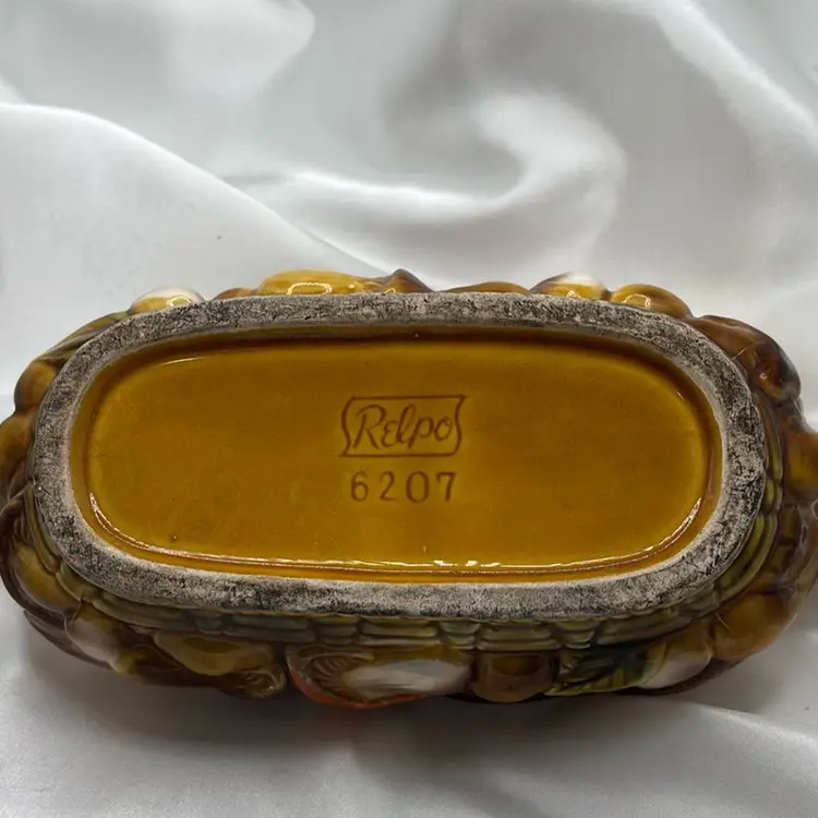 Vintage Relpo MUSHROOM planter. In excellent condition measures with 1 small paint chip not in the ceramic. Measures 8” long by 2.5” high.
