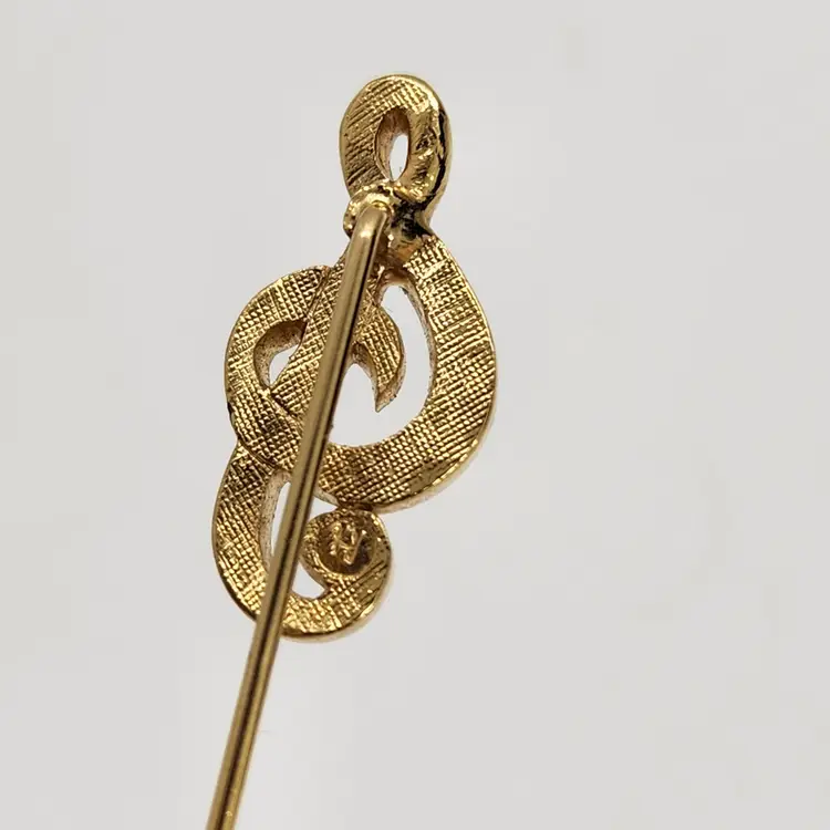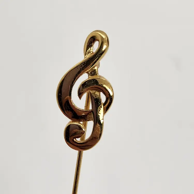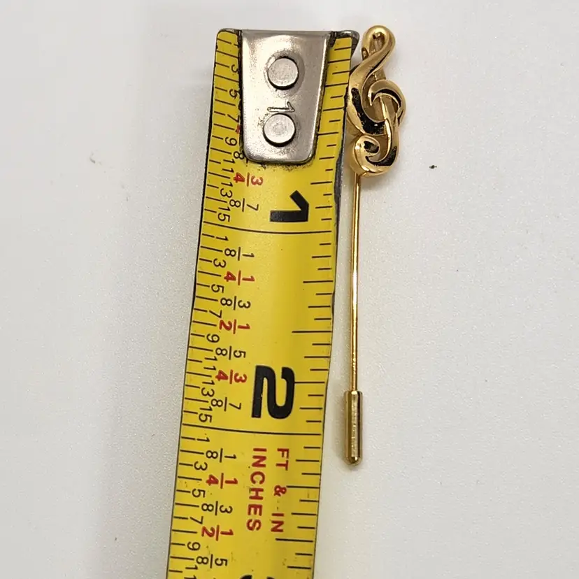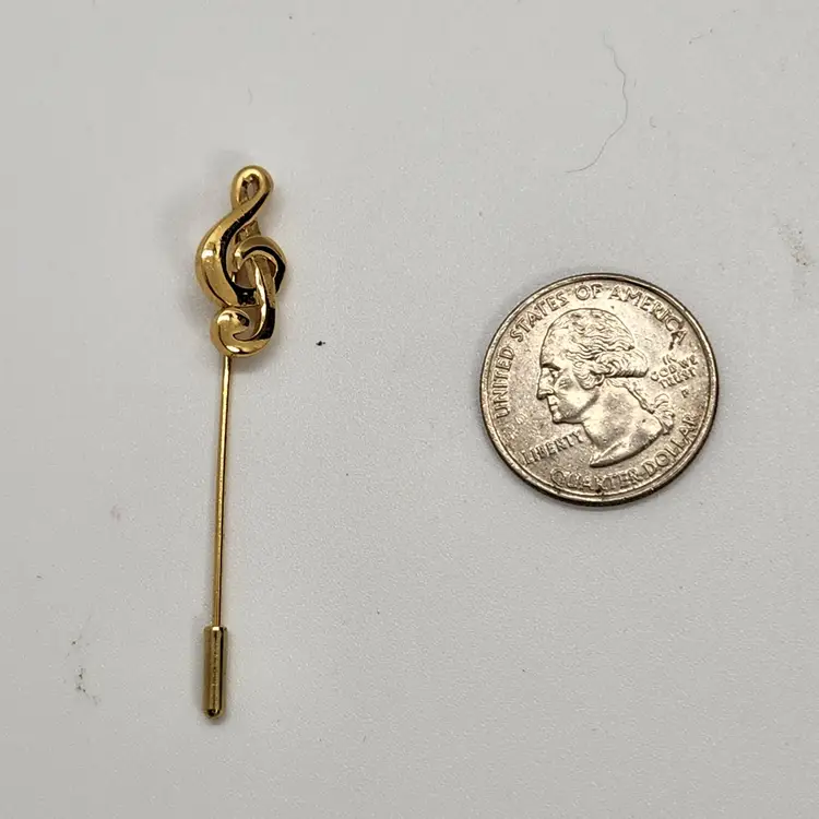 Flat discount shipping on this item. Great gift for the musician/music lover. Shiny realistic music staff gold tone tie tack / stick pin brooch. Marked with an "H", seems to be nice quality. Comes in a new jewelry box, great for gifting or for storage.
