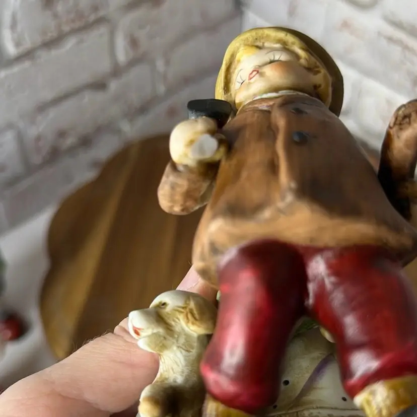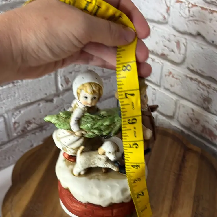 Measures 7.6” tall and the music is ify it stops and does not really continue to play and the button of the axe is broken off