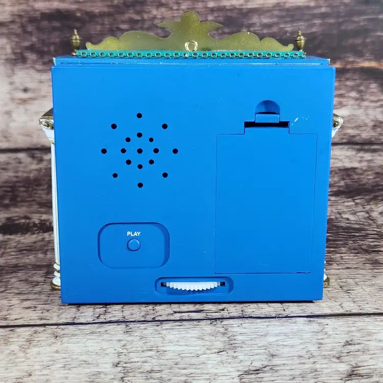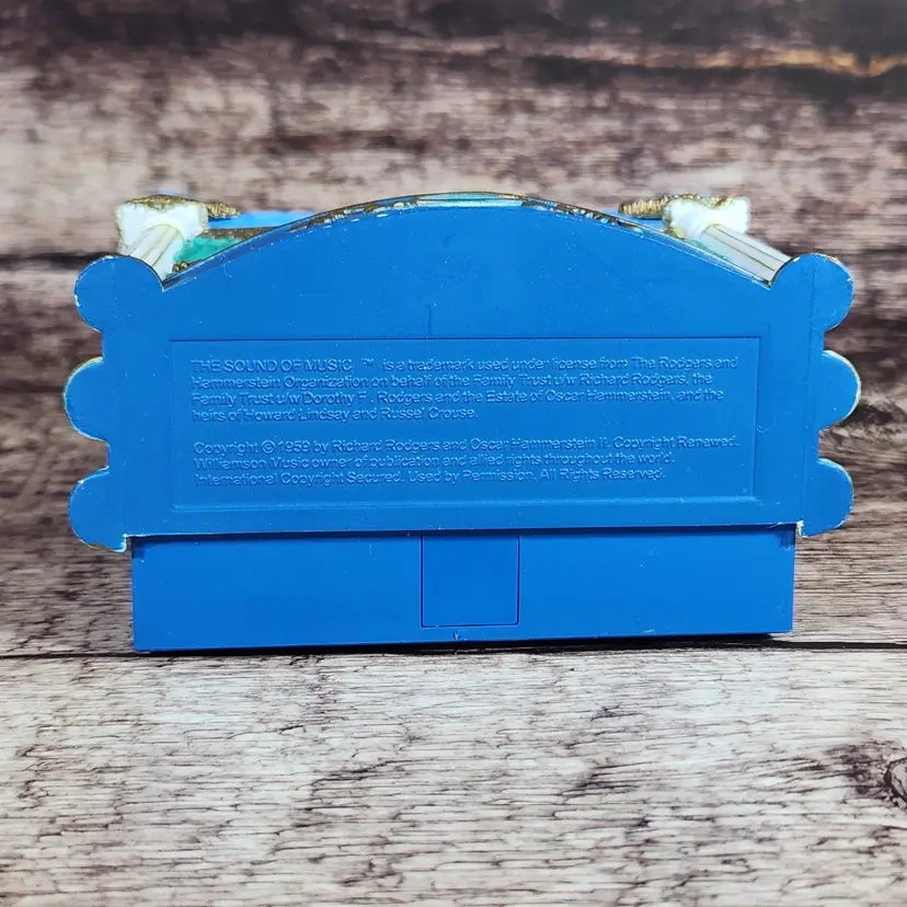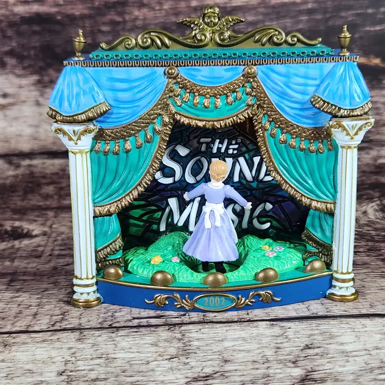 Working light up 2002 Sound of Music ornament by Carlton Cards. This plays the signature song from the show, "The Hills Are Alive/Sound of Music". Has been tested and works. Runs on 3 AAA batteries. Comes with original box and inserts. In addition to lights and music there is a gear on the back that allows you to spin Maria mechanically. I have other musical ornaments listed so please check my other listings.