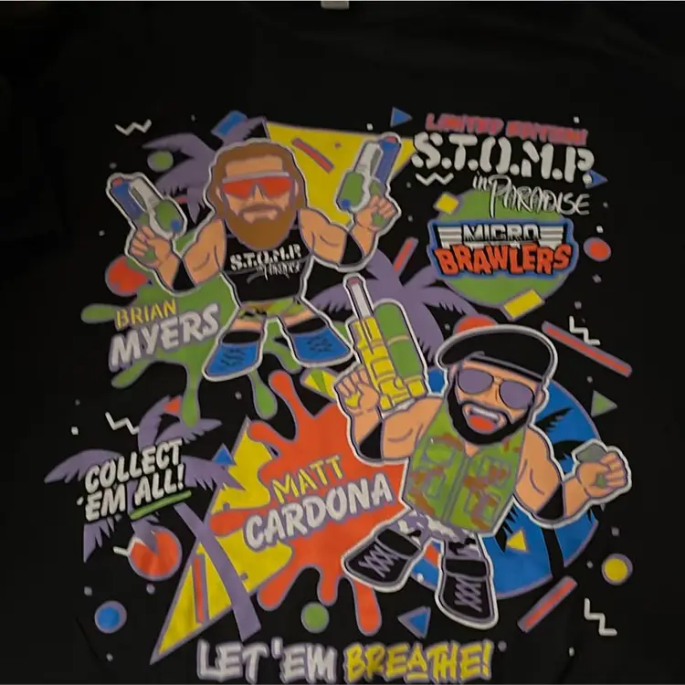 Size xxl All shirts are brand new, never worn, never washed, unless stated otherwise. If only 1 picture, the back is blank. Will post second picture of back if applicable. Most shirts were acquired from Pro Wrestling Crate and WWE directly unless noted differently.