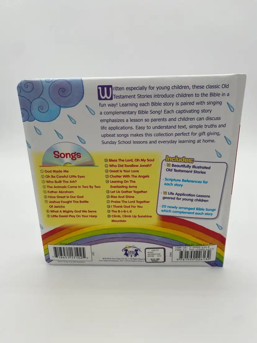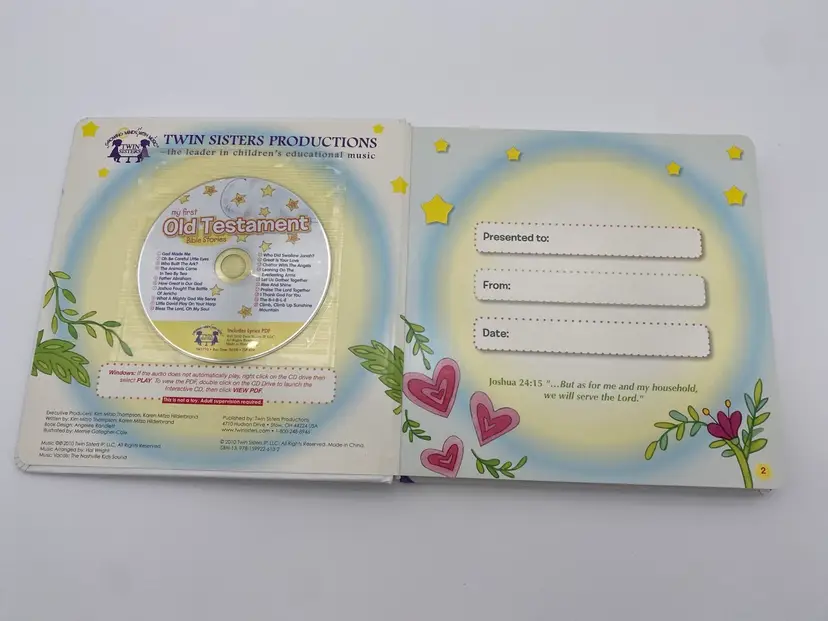 You are purchasing one My First Old Testament Bible Stories Children's Book w/ Music CD by Twin Sisters Productions from 2010. This Book is new and unused, with the CD still sealed inside.