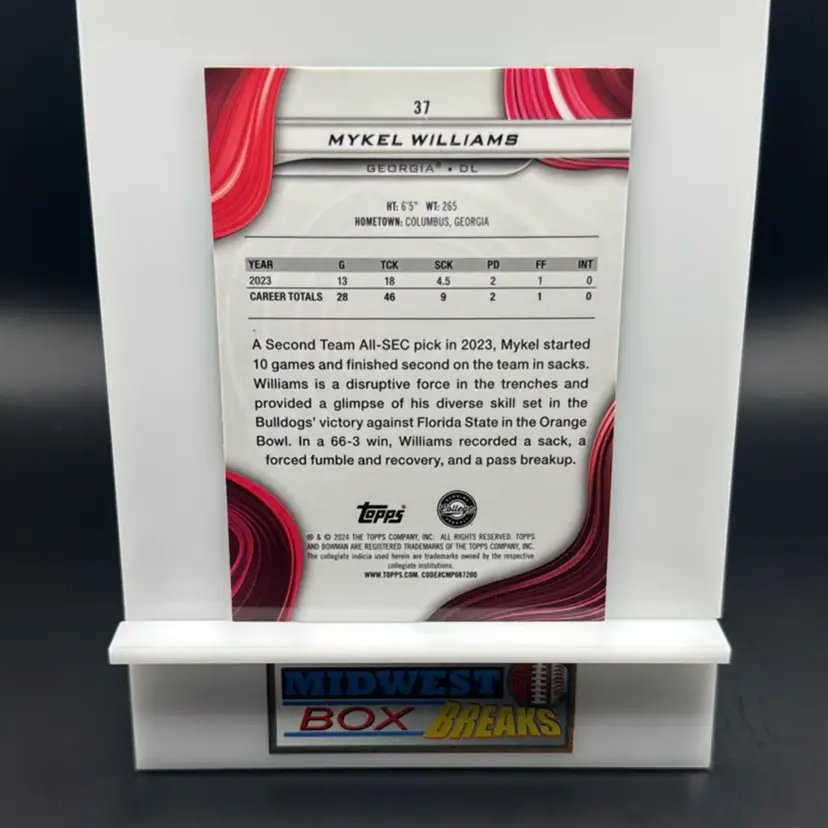 Mykel Williams 059/225 Aqua 2024 Bowman’s Best U Georgia Bulldogs MBBCRD
