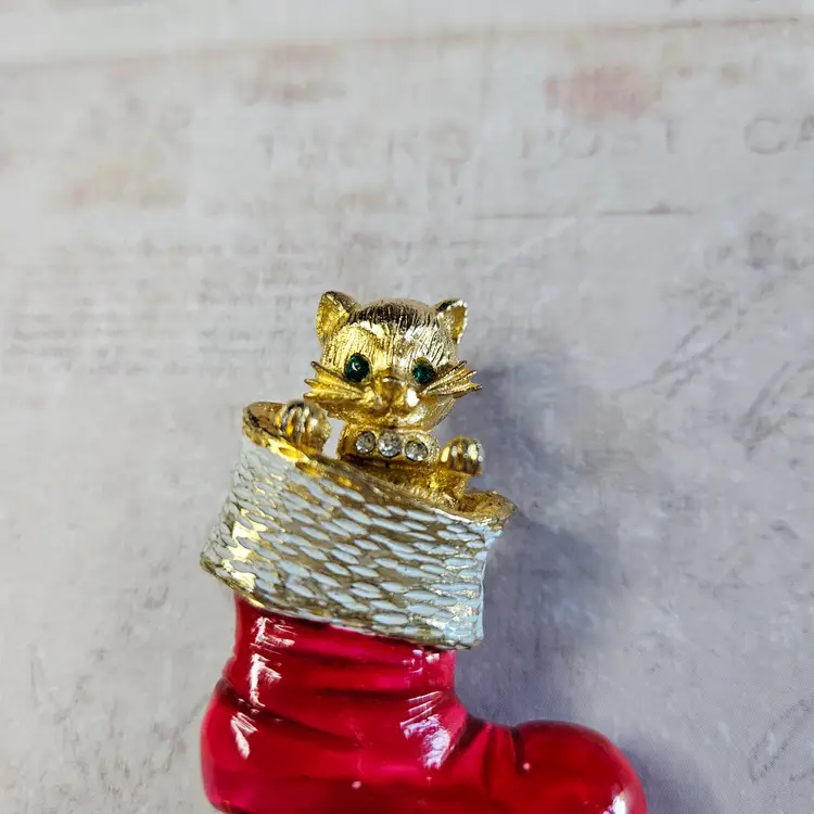Darling cat with stones intact. Marked MYLU APPROX 1.75"