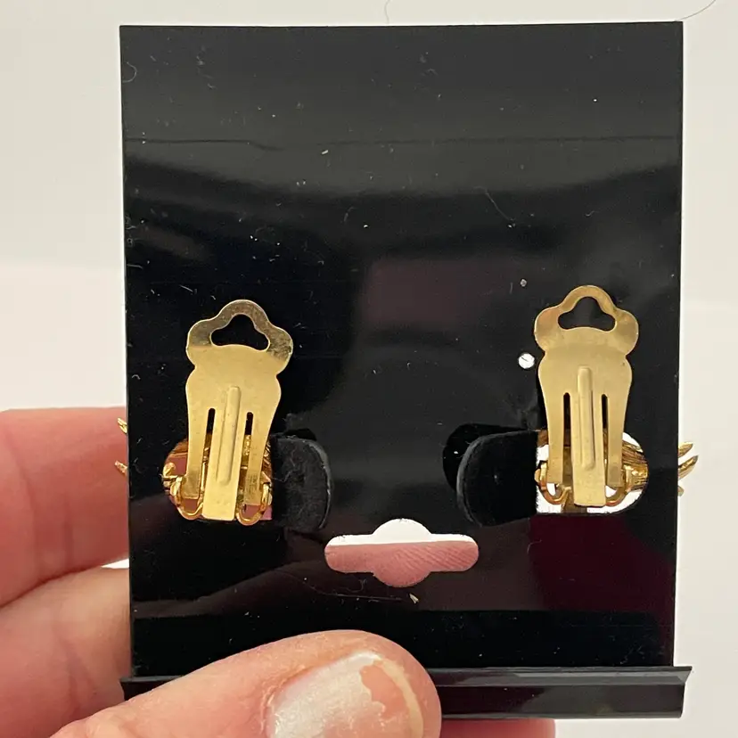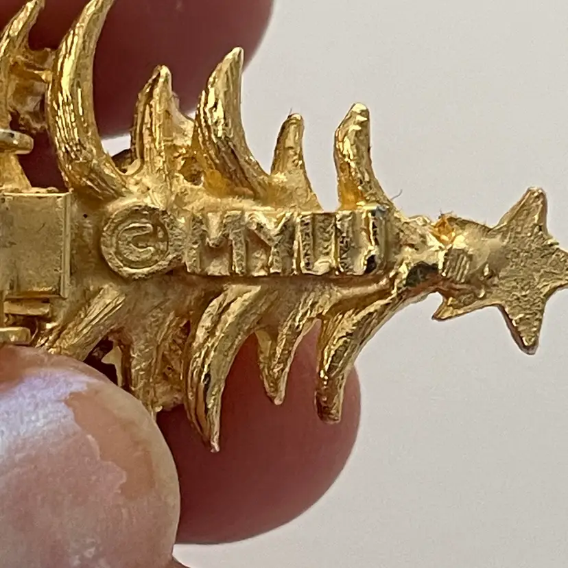 MYLU signed Christmas tree clip earrings