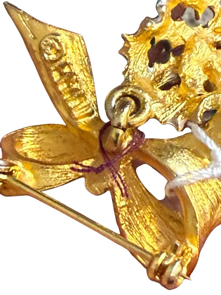 Enamel and rhinestone. Normal wear due to age. Marked in back.