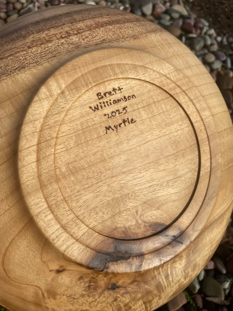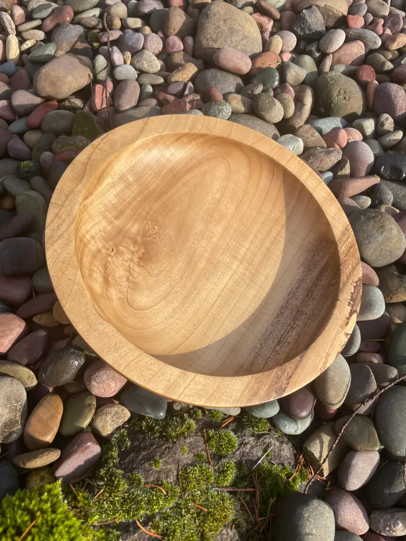 This 2” x 10” Myrtle bowl has a wide rim and is a Pacific NW beauty. Finished in organic walnut oil and beeswax.