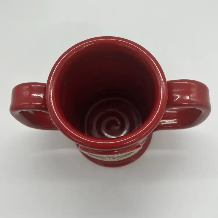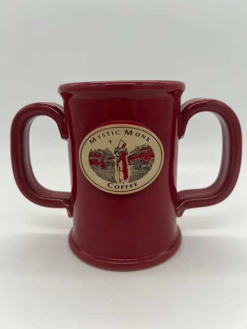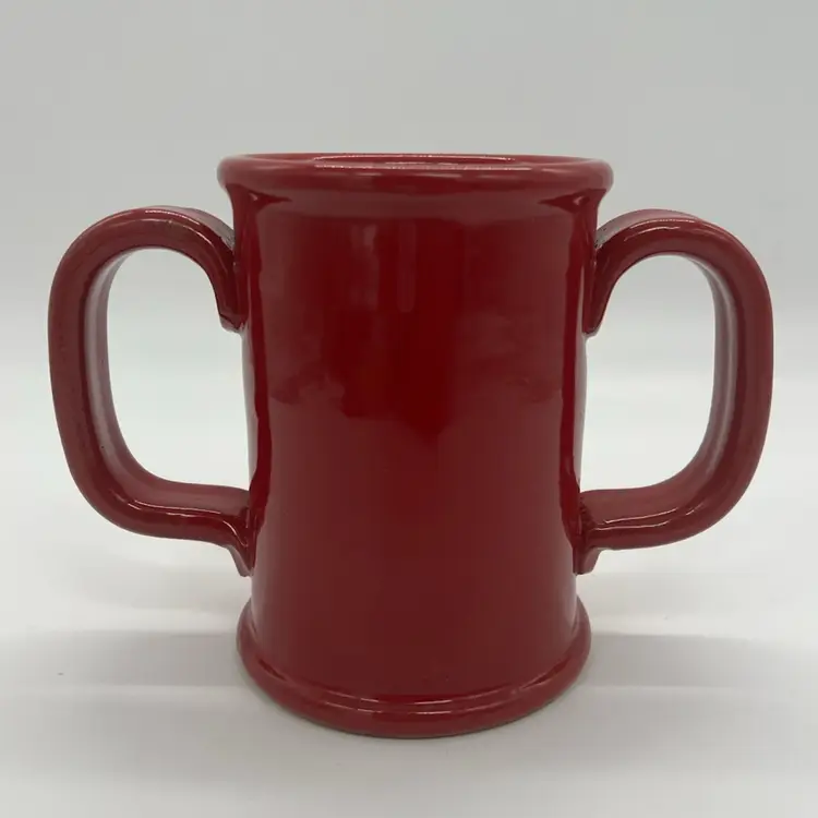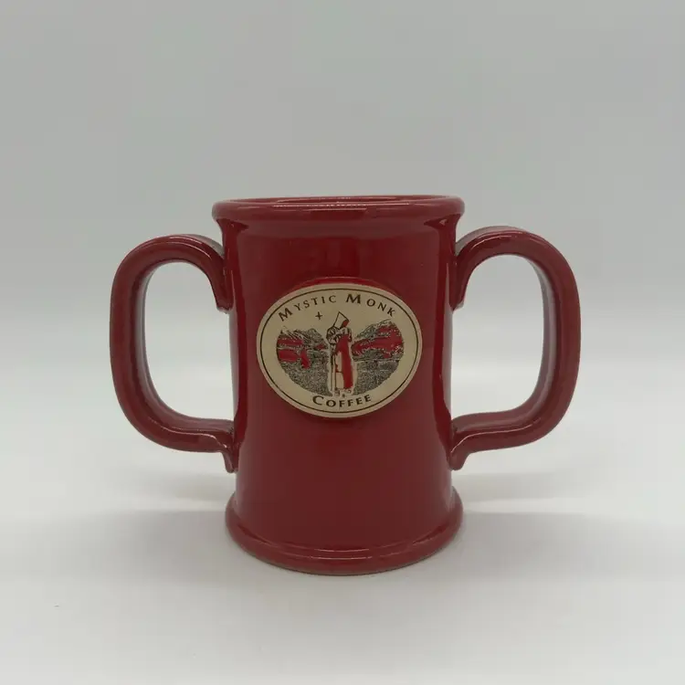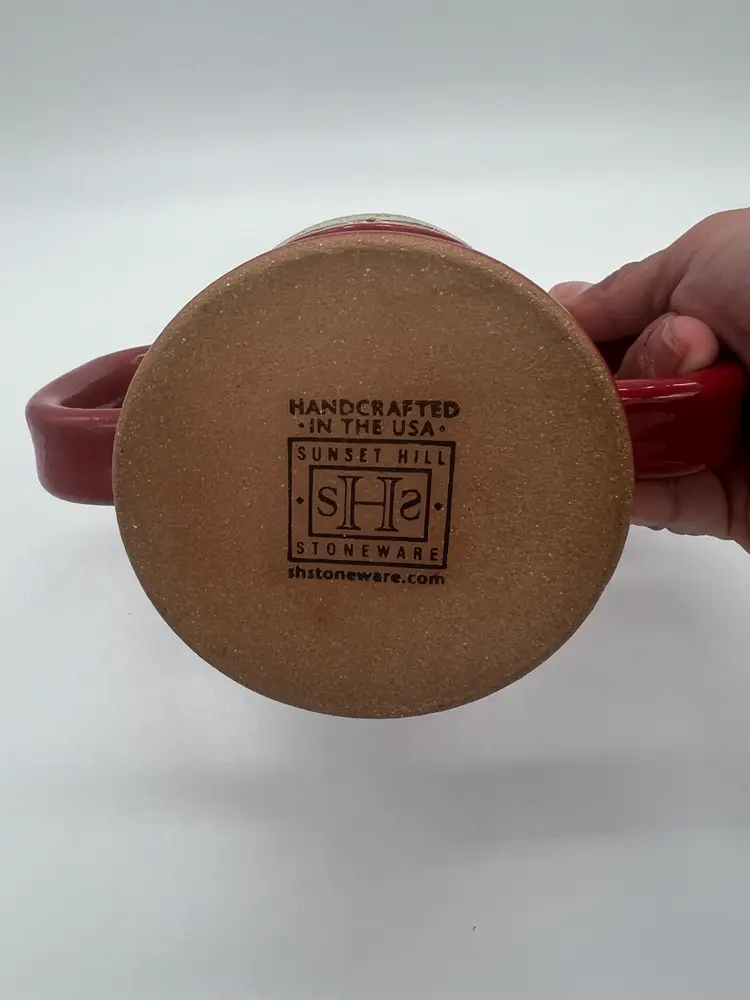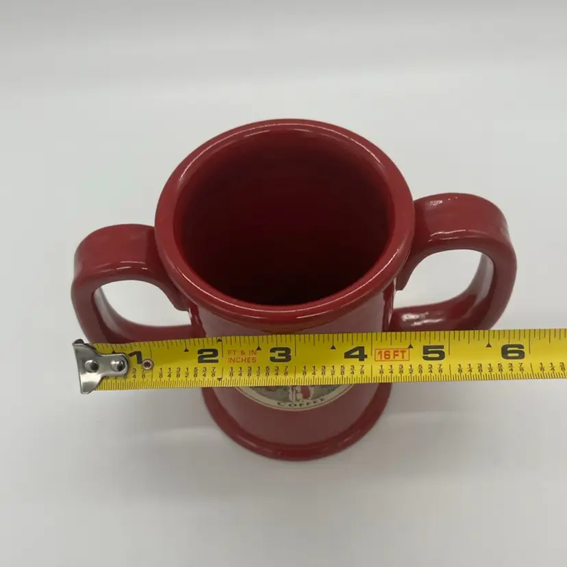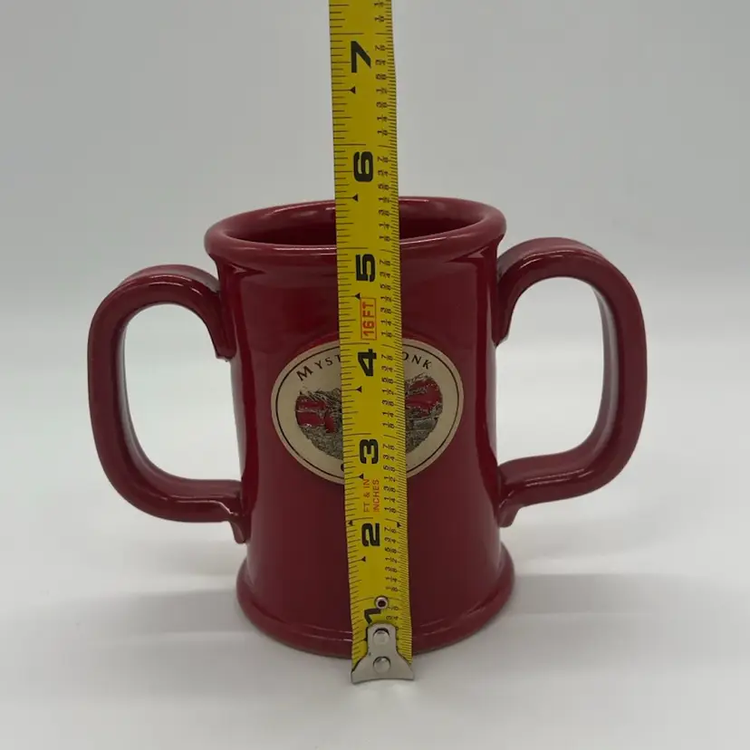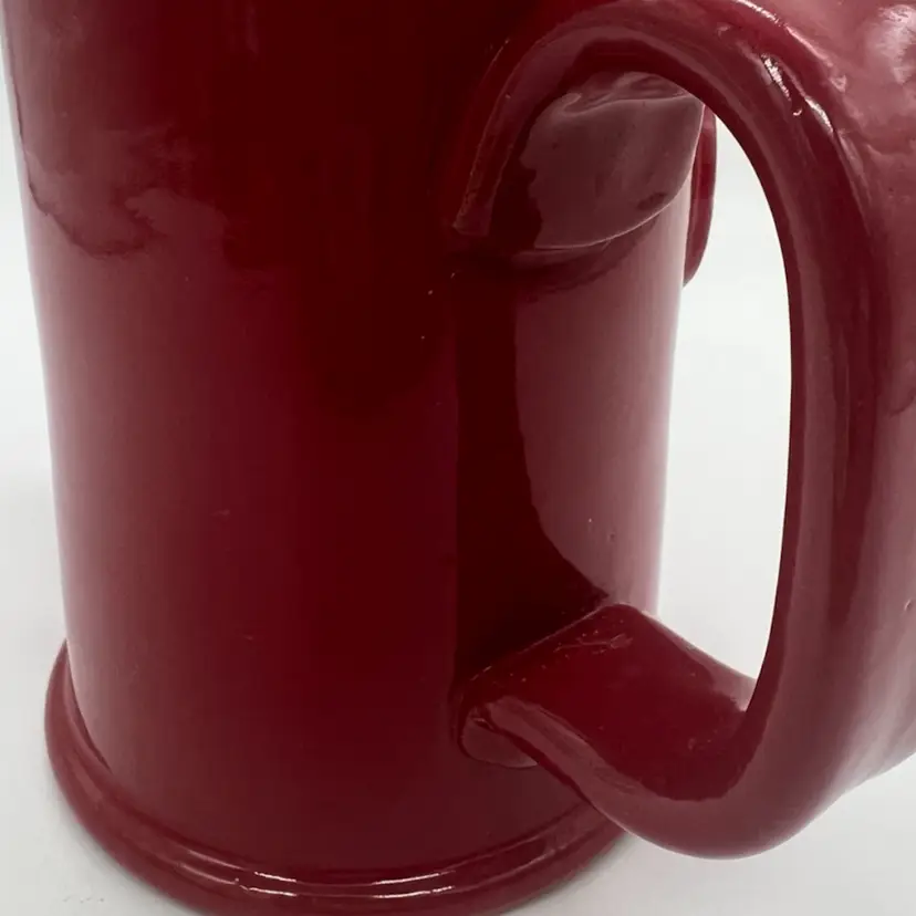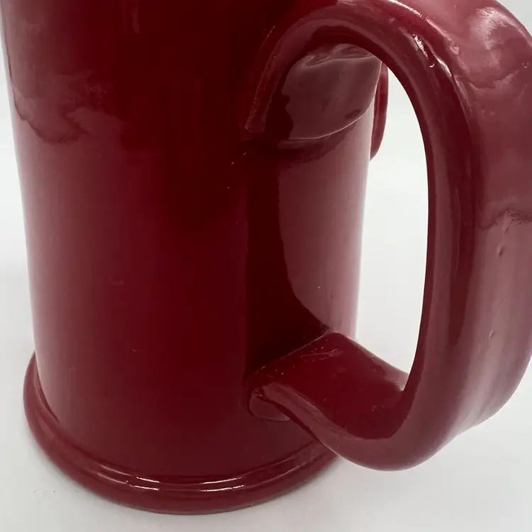 This mug is in excellent condition. No chips or cracks. It stands about 5” tall and is about 6” wide.