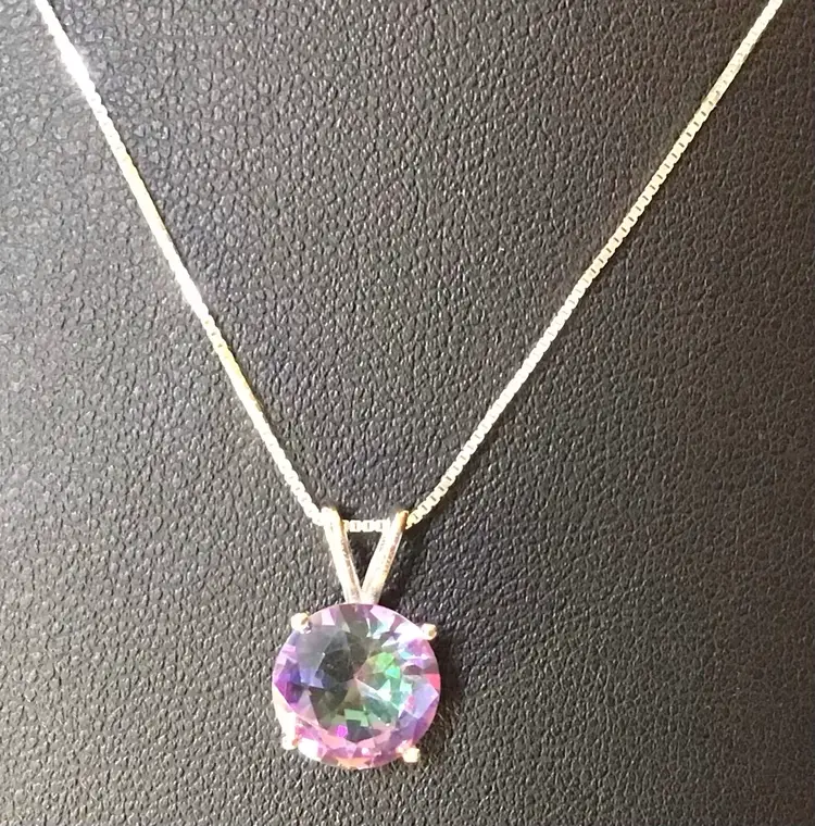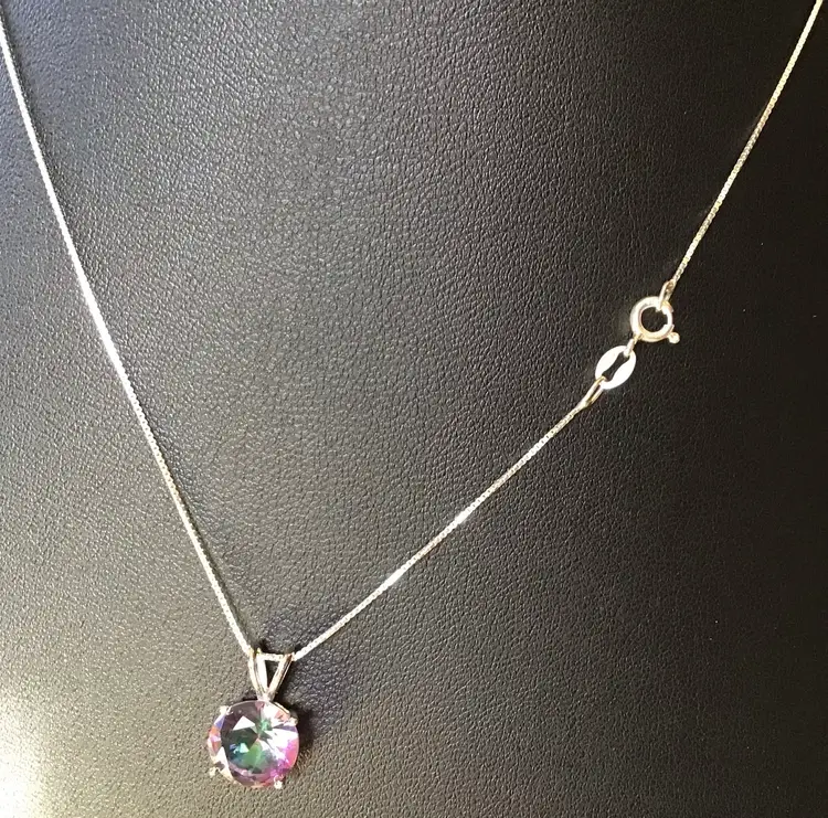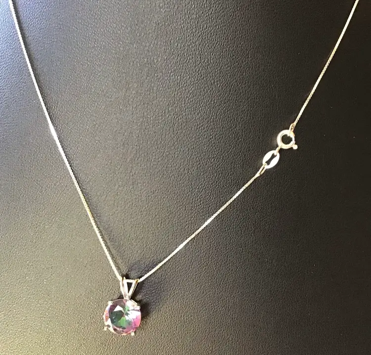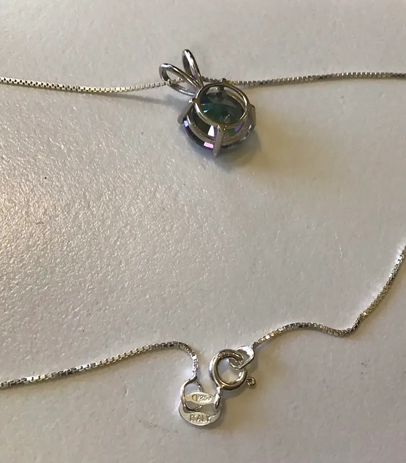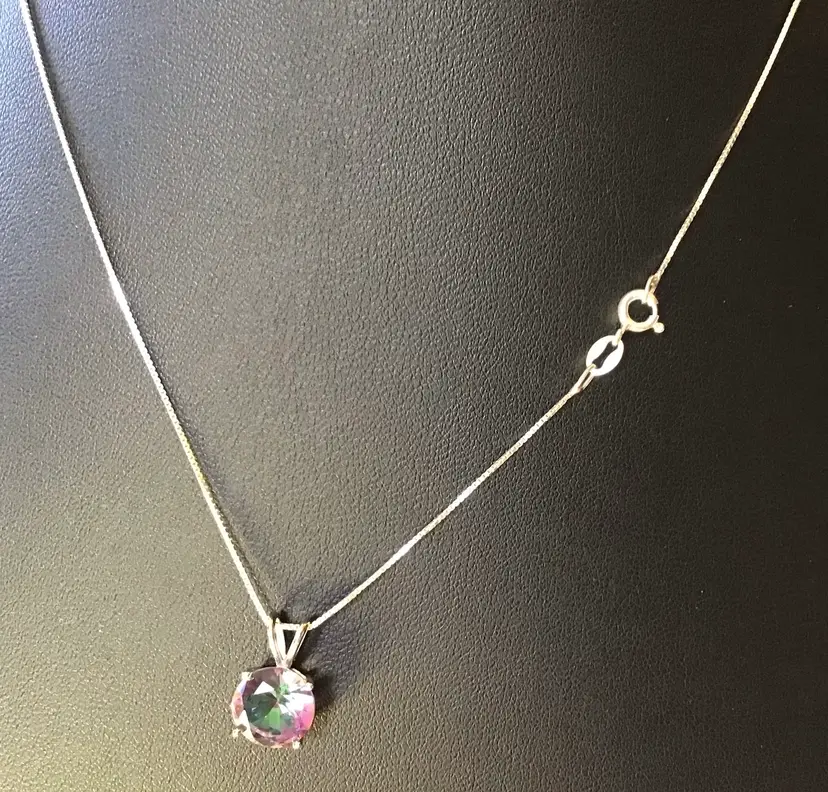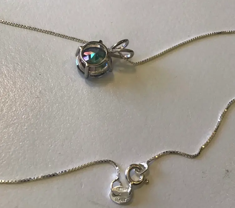 Mystic Topaz pendant on 18” 925 made in Italy box chain, pendant signed 925 BS. #657