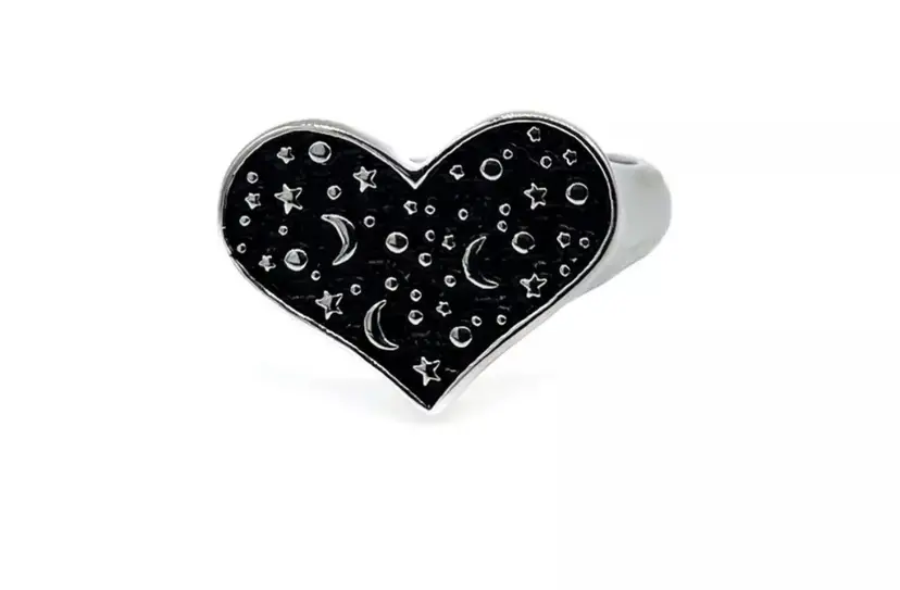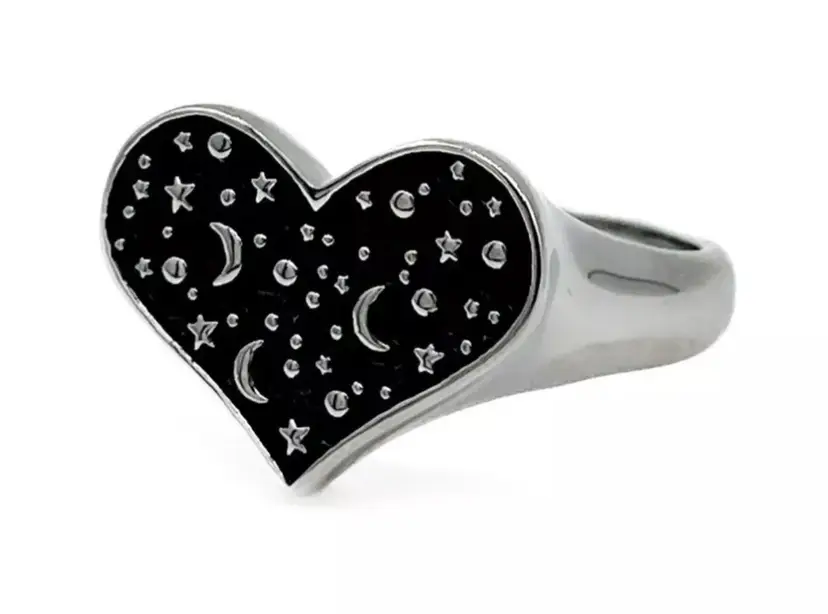 Mysticum Luna Cosmic Gothic Moon & Stars Heart Ring Sculpted by James Suret Art