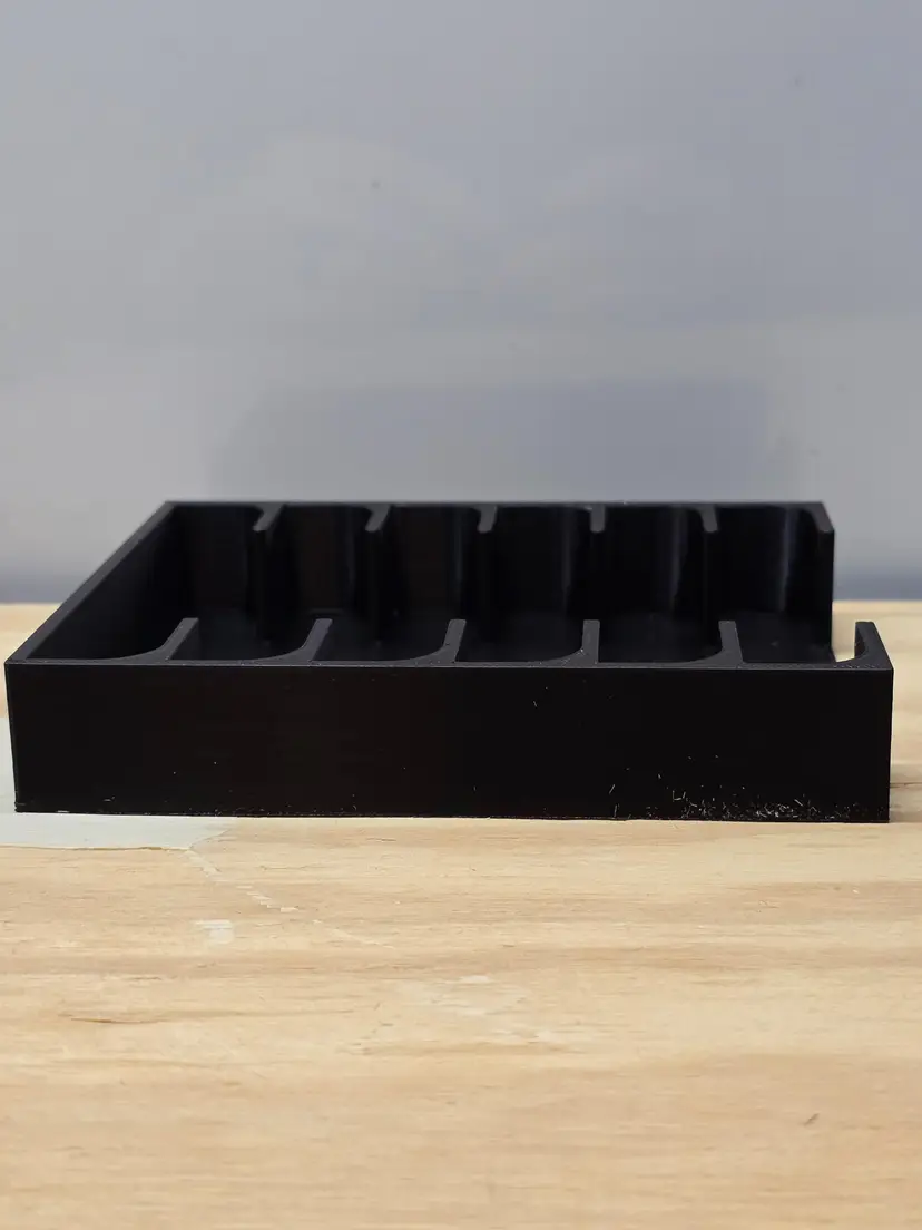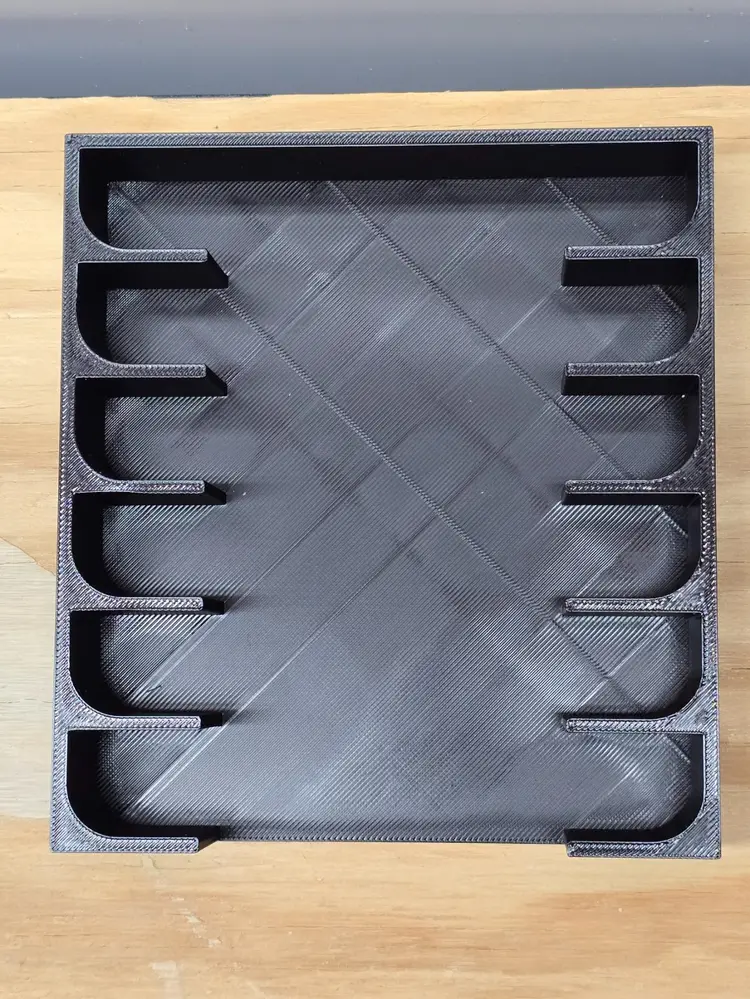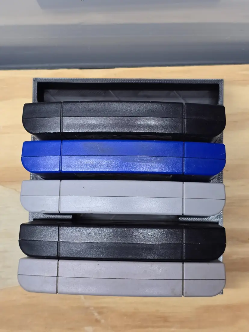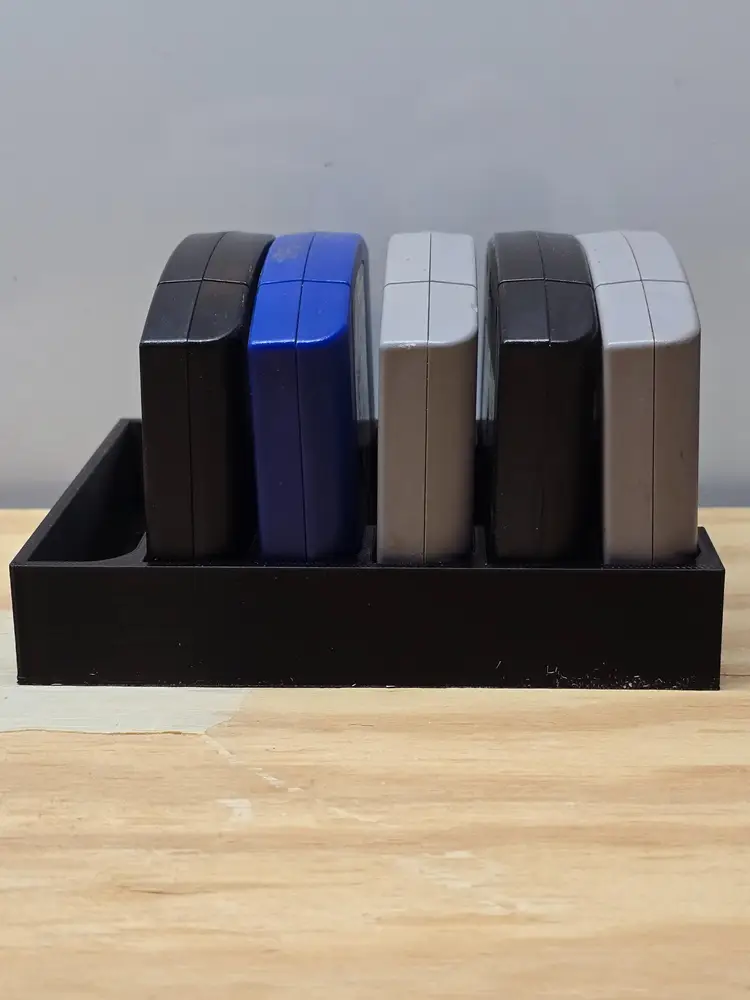 N64 Video Game Storage Tray. This storage tray holds 6 Games. All game trays are designed to fit nicely on a 6" shelf or fit nicely on a 12" deep shelf when using 2.