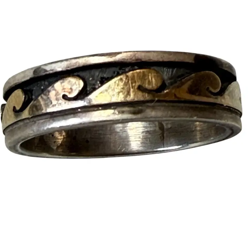 NA Navajo Peggy Skeets 14K Gold Wave And Sterling Silver Band Ring Size 11