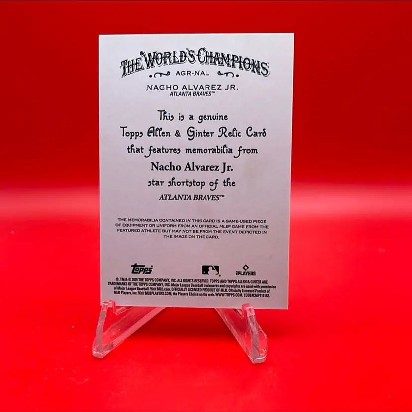 Nacho Alvarez Jr 2025 Topps Allen & Ginter RC Full Size Relic Atlanta Braves
