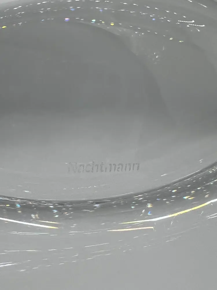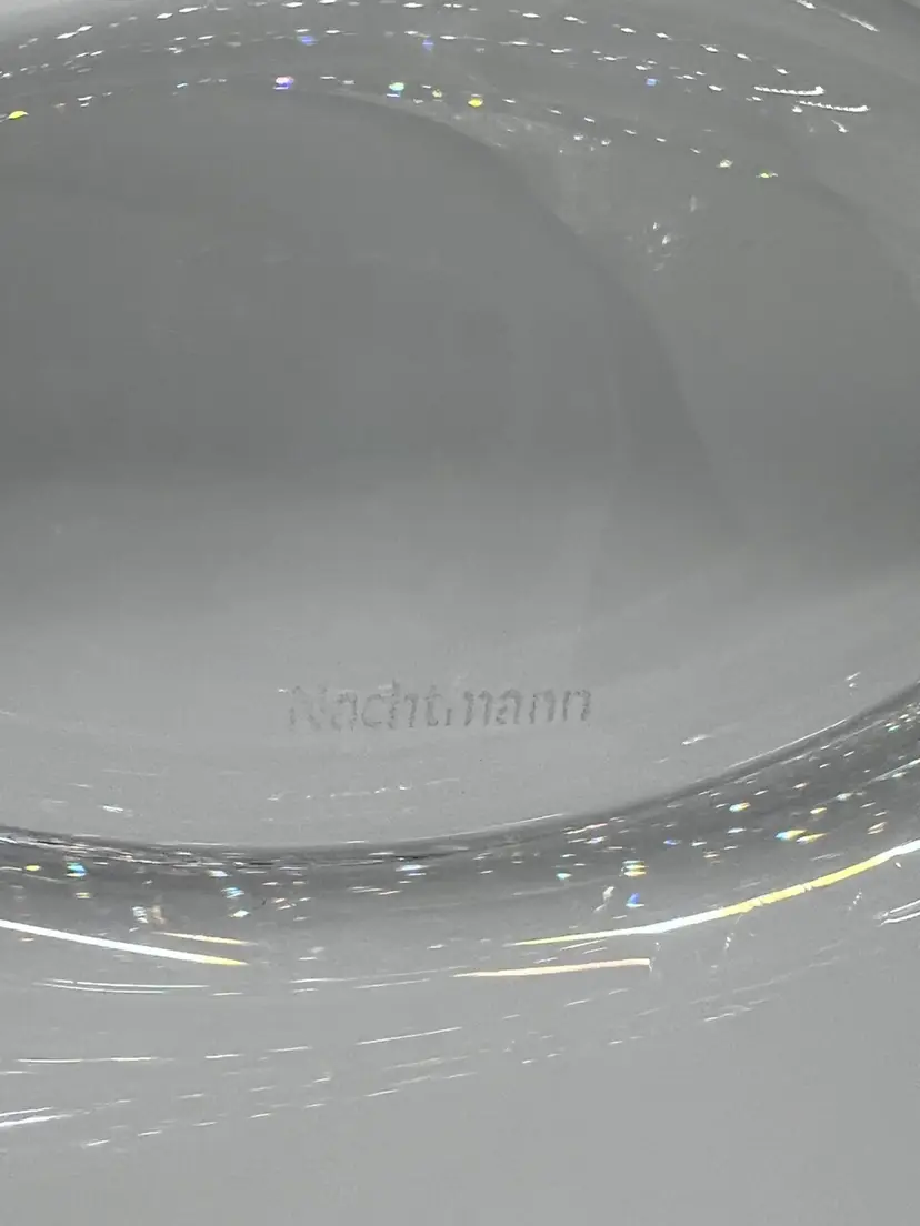 This beautiful crystal bowl feels amazing in your hand. Such clean smooth lines and softness to the touch. It sparkles in the light and is just so beautiful. There are no chips, cracks or scratches. It's just lovely. Nachtmann Signature in the base.