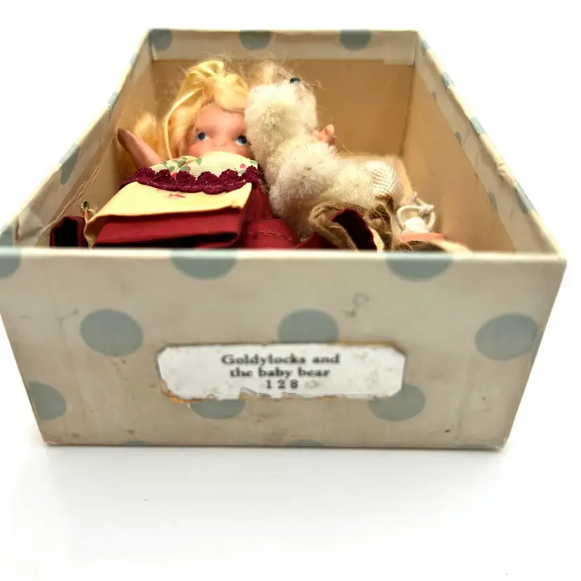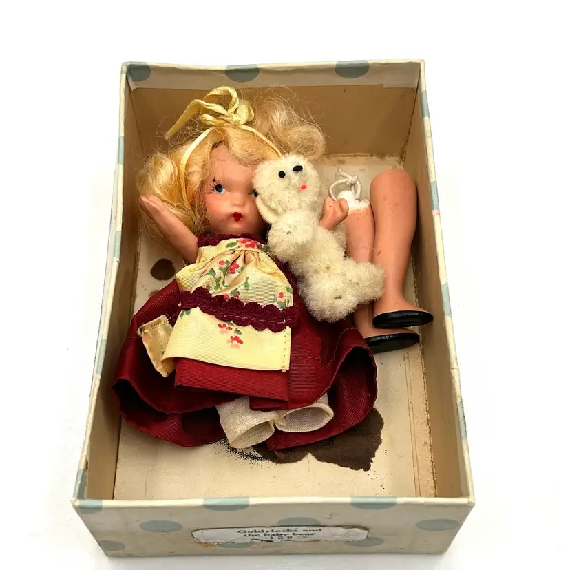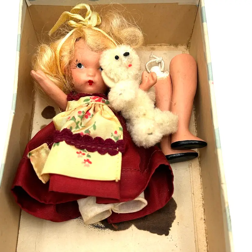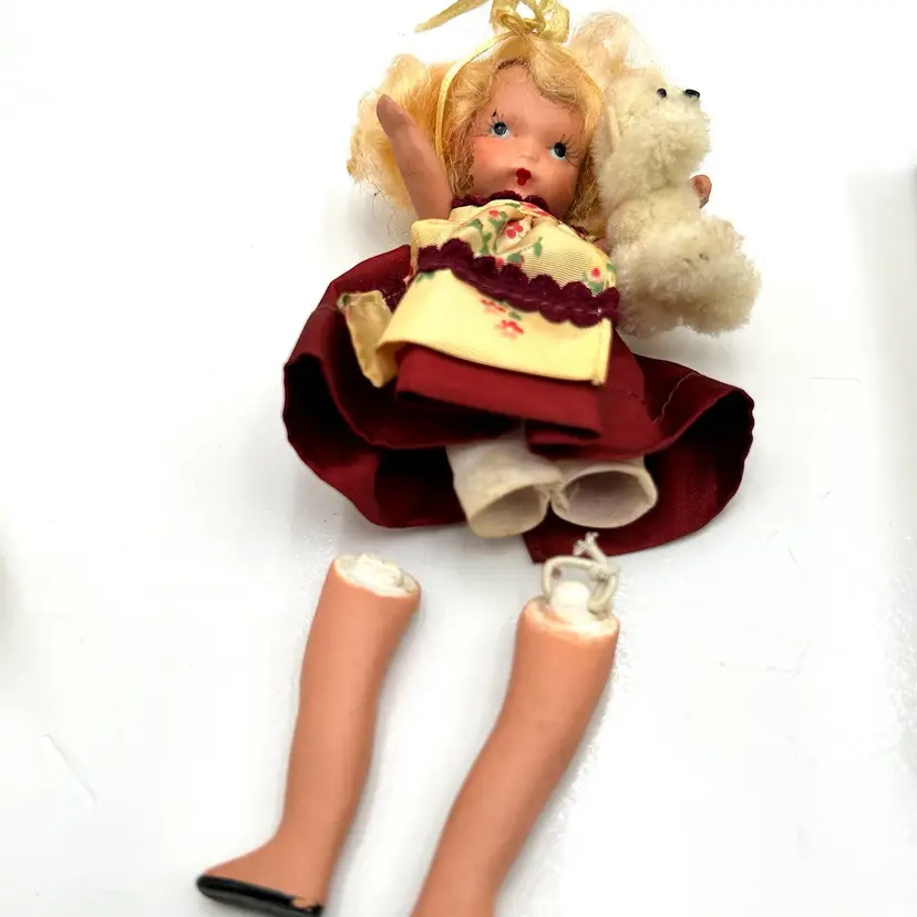 As shown About 5 inches tall Needs repair to the legs as both are no longer attached, hair and bow need to be fixed up