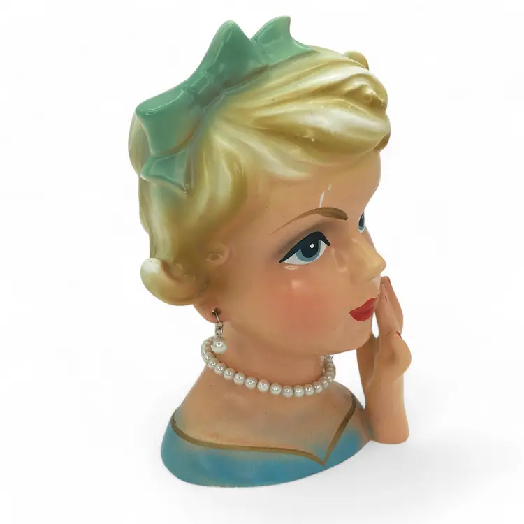 Very good condition on this vintage NANCY PEW lady head vase planter