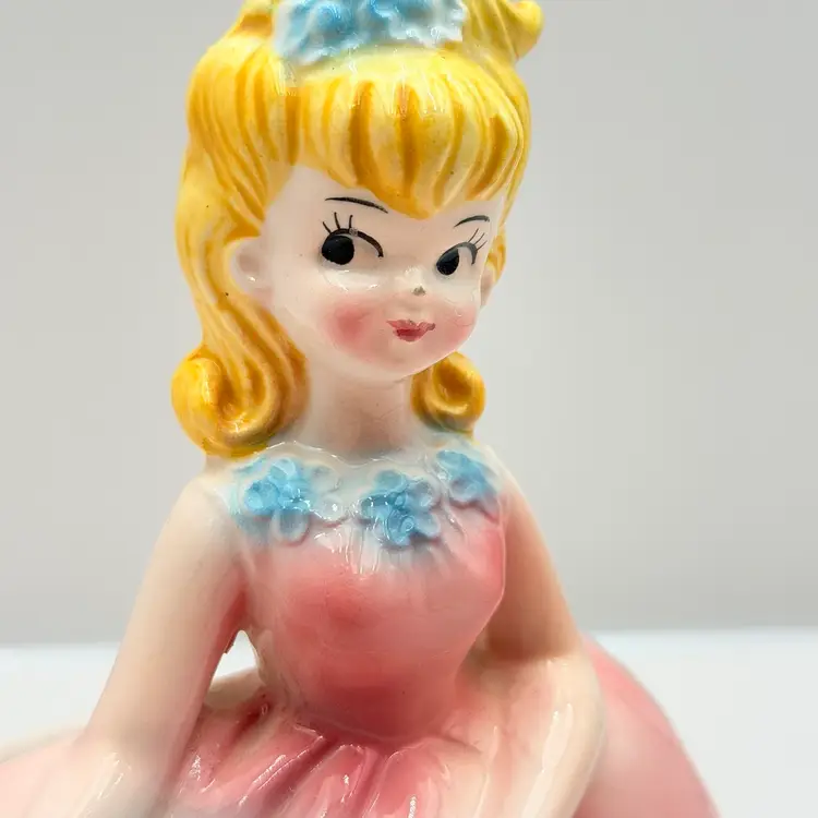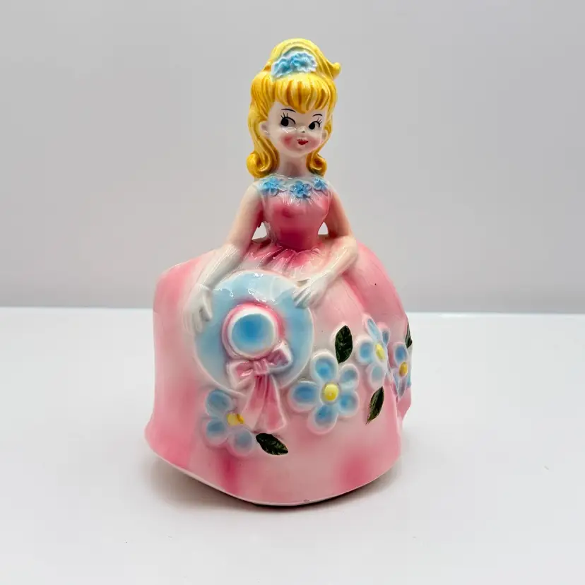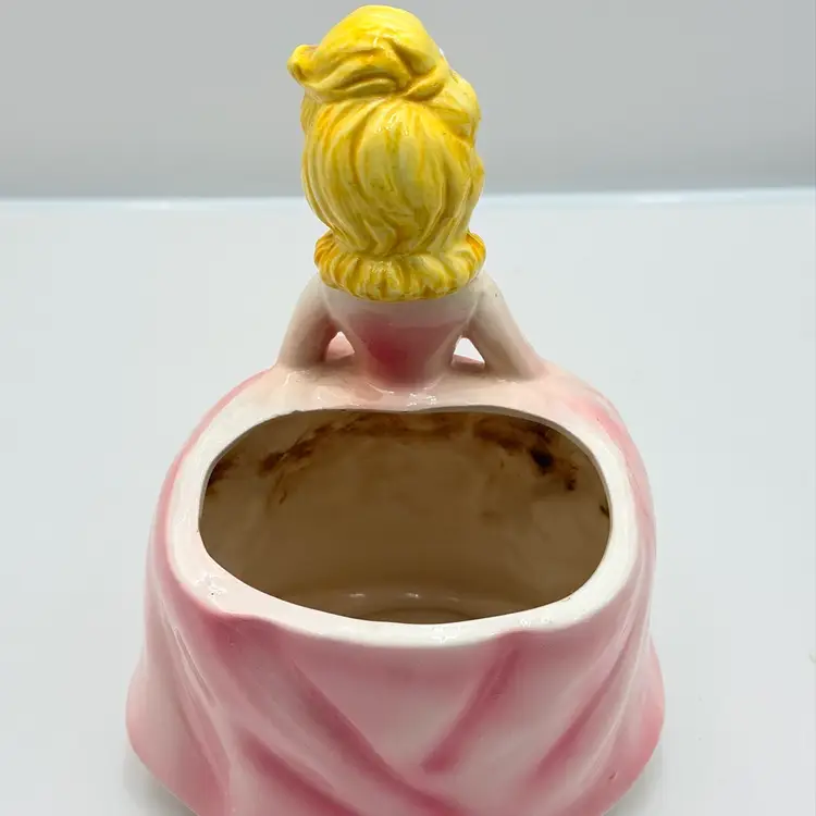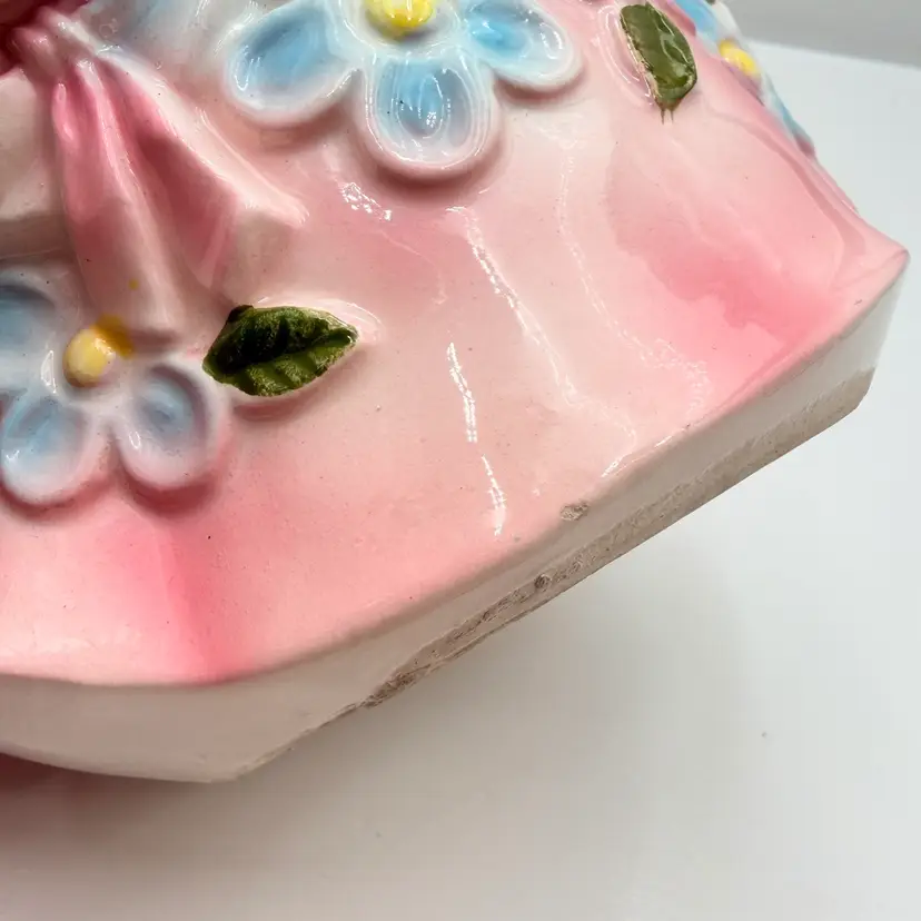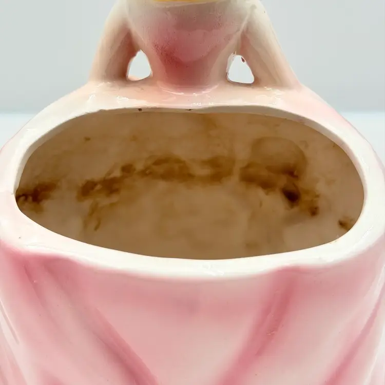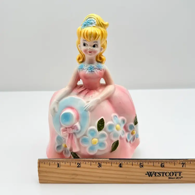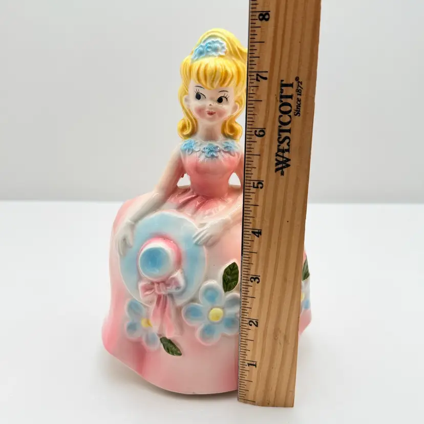 As shown 8 inches tall by 5 inches wide Small chip on nose and bottom of dressno cracks. Was used inside is dirty.