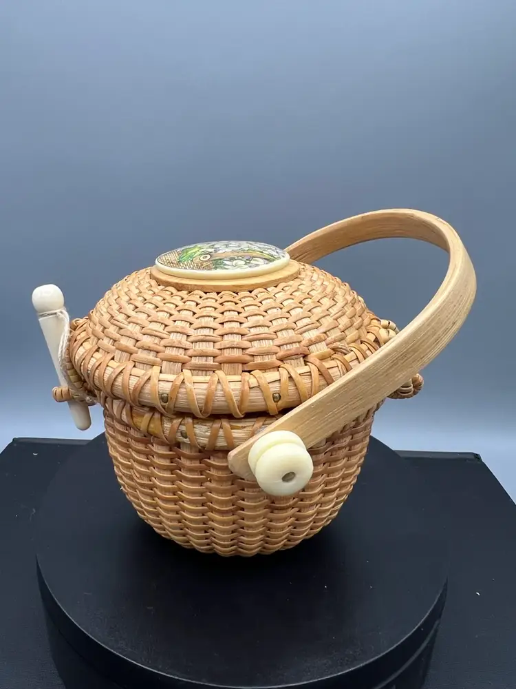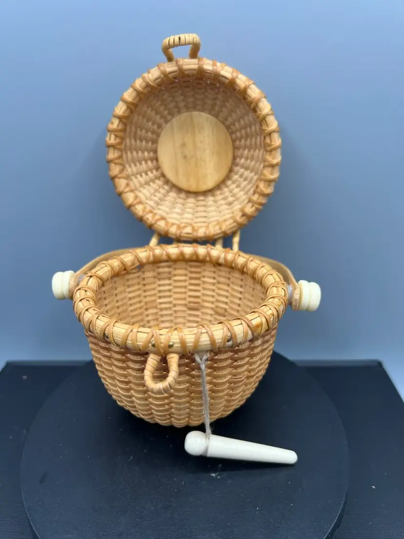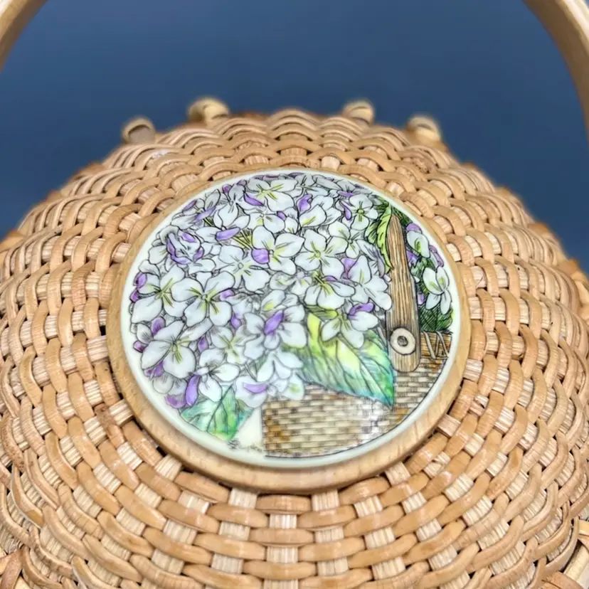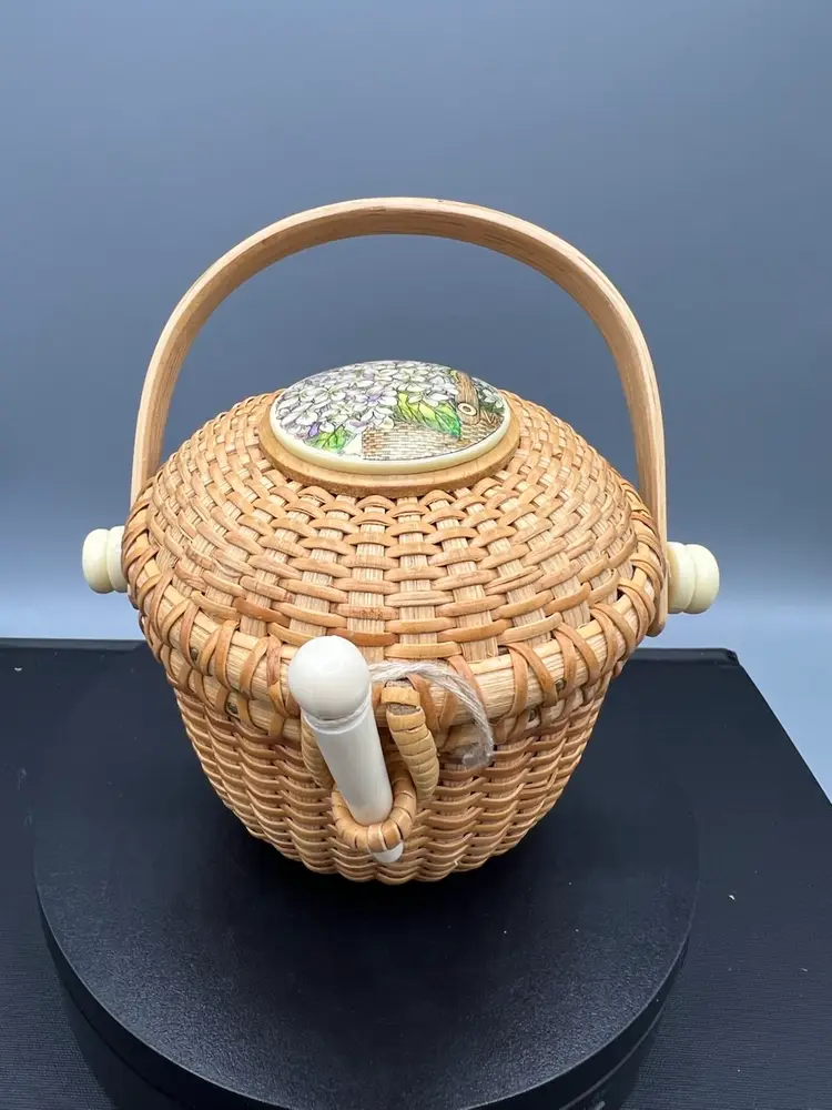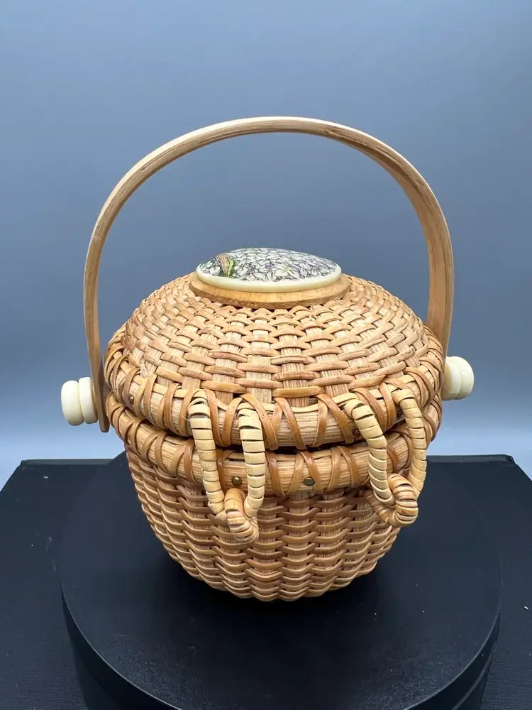 Vintage Nantucket Lidded Basket with floral Floral Topper