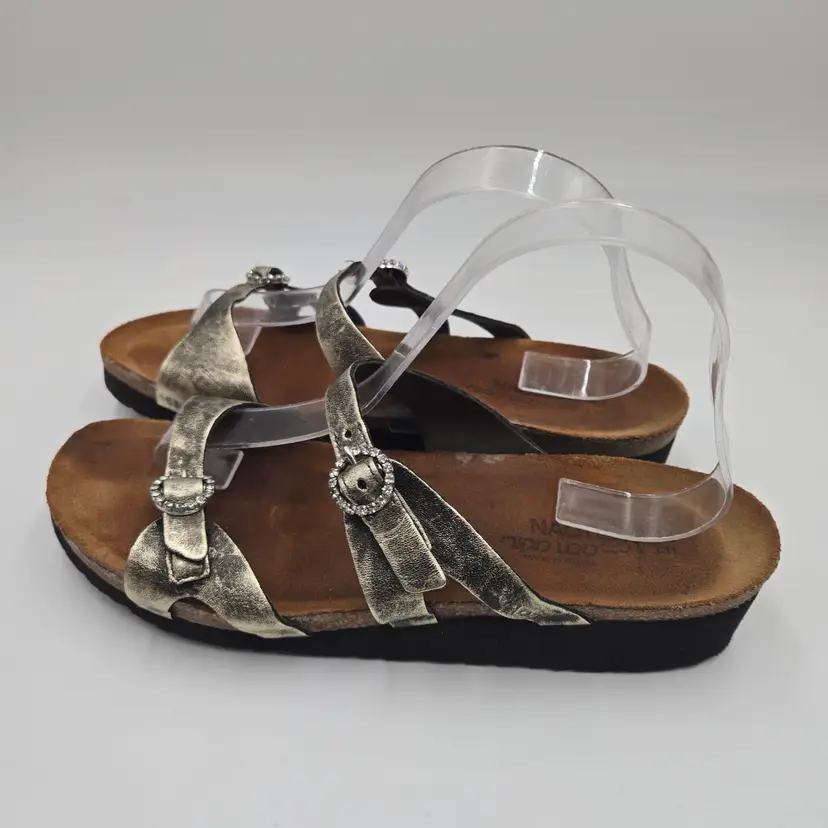 Naot Kate Metallic Sandals Women's Jewel Buckle Antique Gold Glam Bling 11