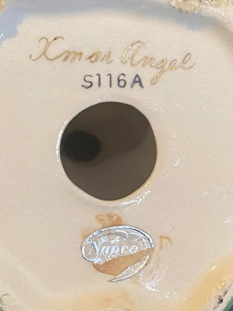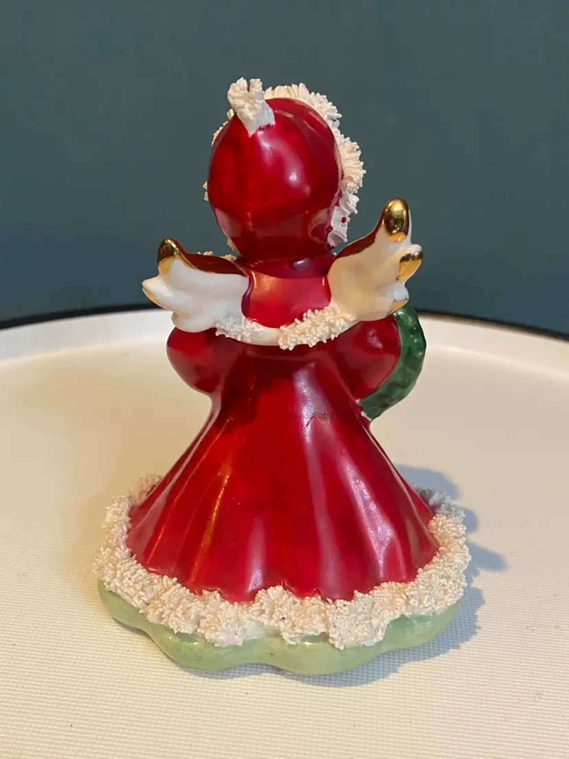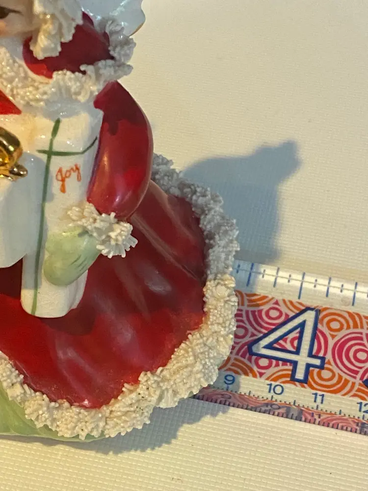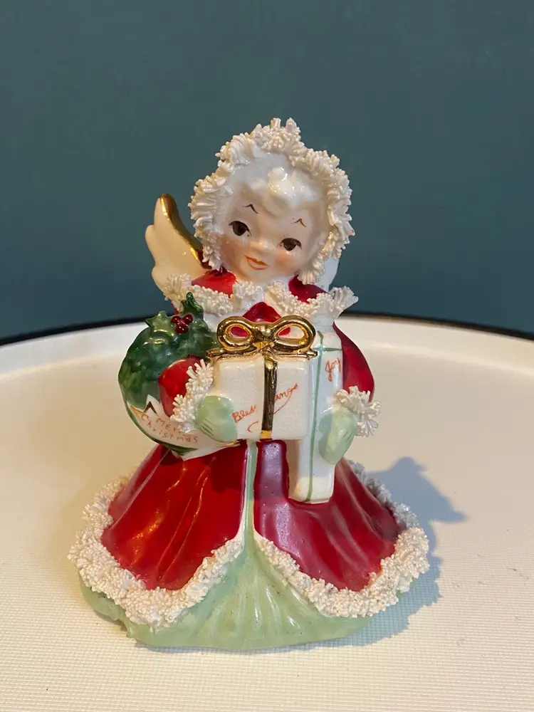 Napco Christmas Xmas Angel with Gifts Figurine S116A UNUSUAL Spaghetti Trim
