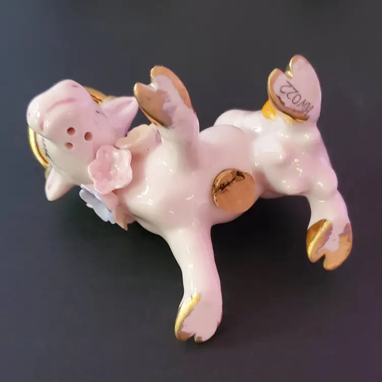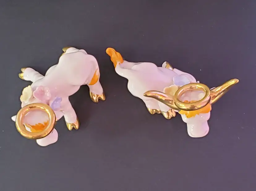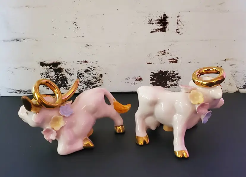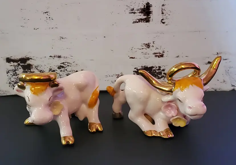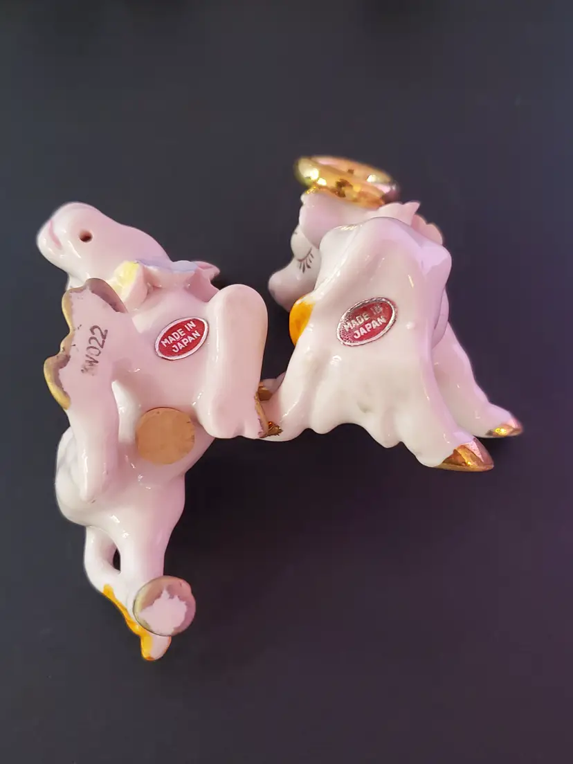 Napco Japan Pink & Gold Angel Cow and Bull Salt and Pepper Shakers. Very unique and cute and in very good condition