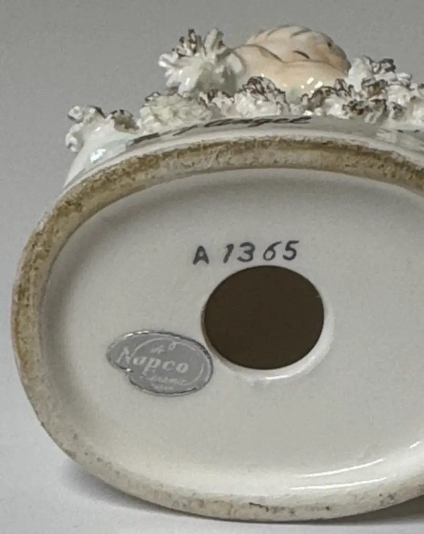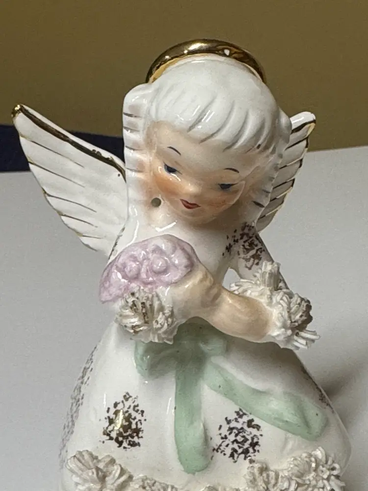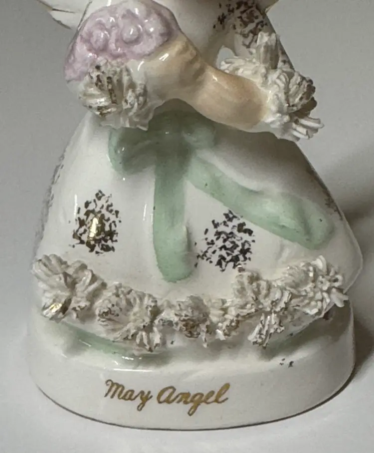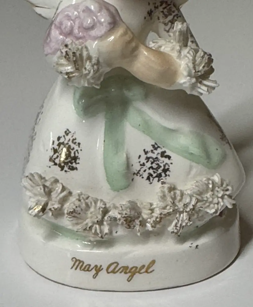 Napco May Birthday Angel Vintage 1950’s Original Ceramic Spaghetti Trim #A1365 4.5” tall Features intricate white and cream details. Perfect for collectors. Excellent like new condition with no breaks or chips (13511126258)