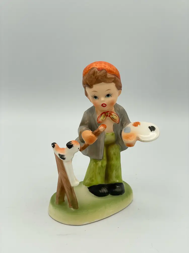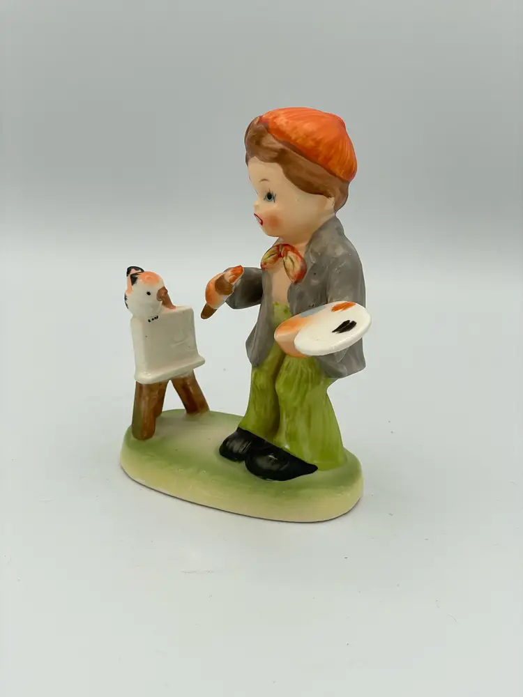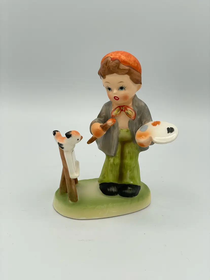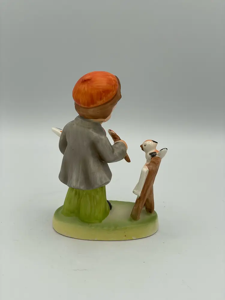 Napcoware Boy Artist With Bird Ceramic Figurine. 1950's - 1960's. Stamped #9484. No Chips/Cracks.