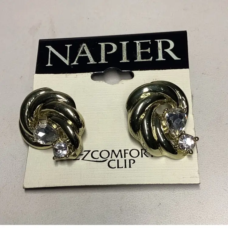Napier Goldtone With Crystal Clipon Earrings 1/2” - New Old Stock