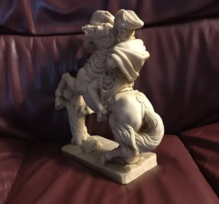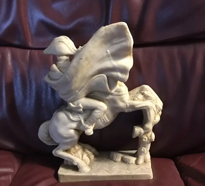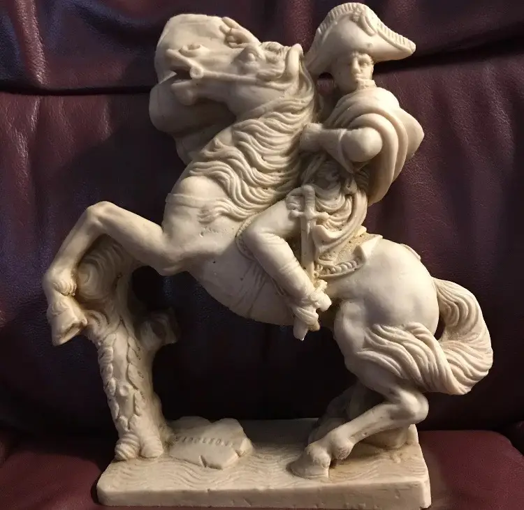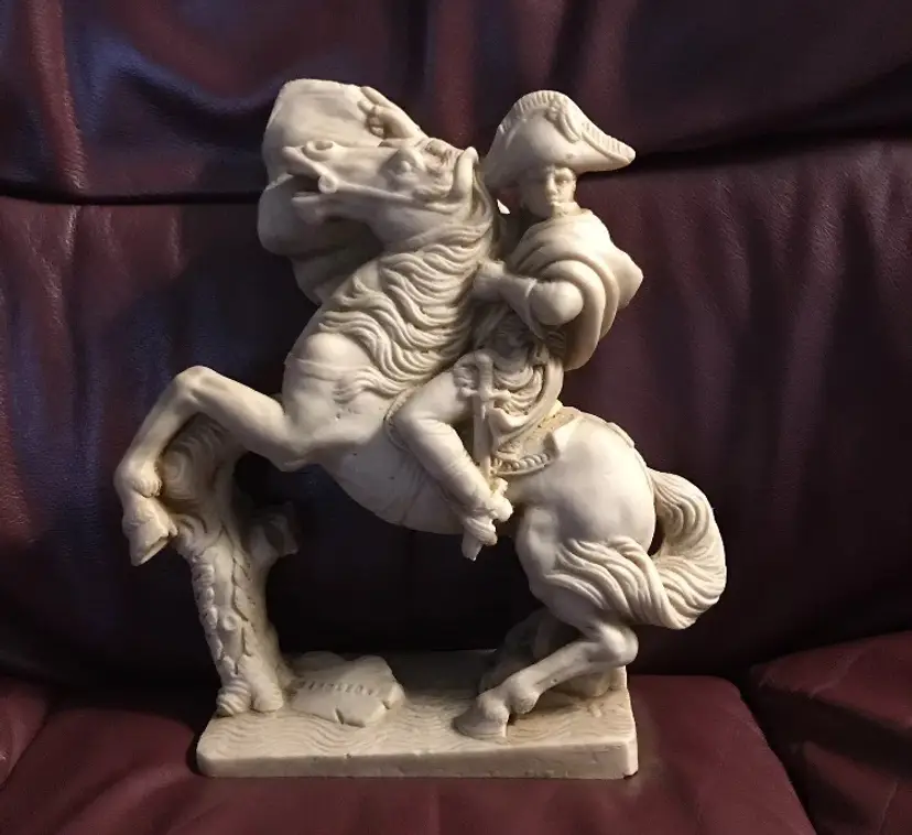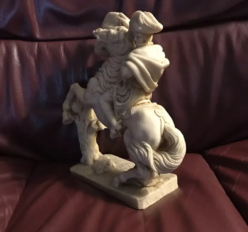 Napoleone on Horse in uniform "Composite Alabaster" Original signed "AGUILAR" This is an Original Peice, many copied of this statue, but this is a Signed Peice of Art by "Aguilar" 1960's Original Signed Napoleone Statue.....Look at the difference in detail if you see one that is a "repo" (This price is from art appraisal book from early 80's)