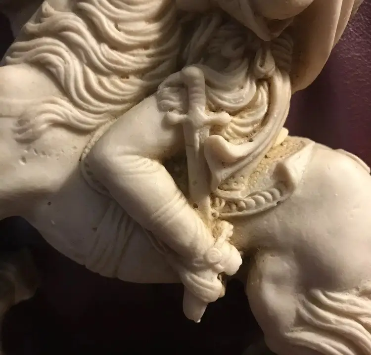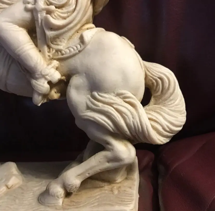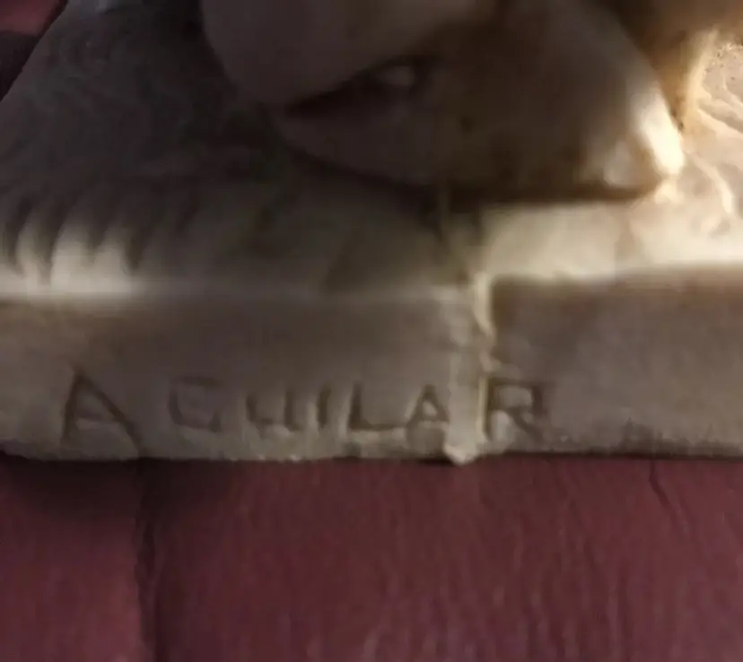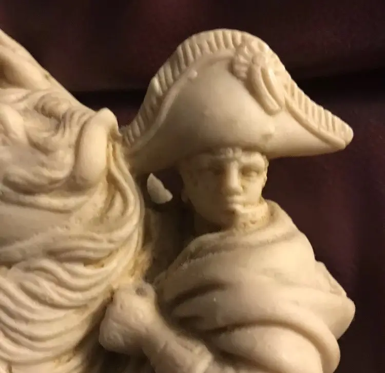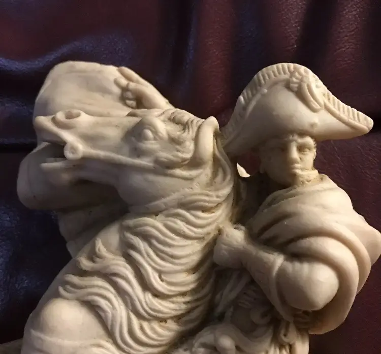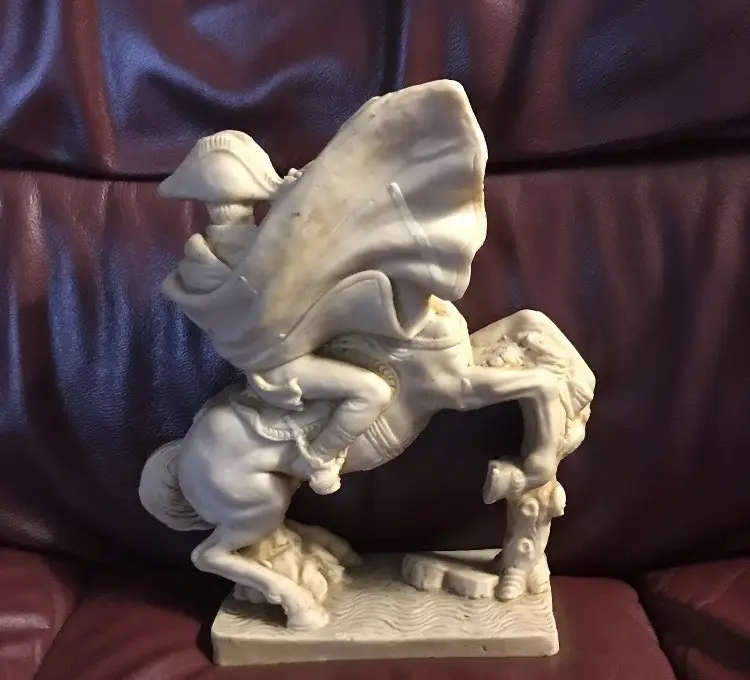 Napoleone on Horse in uniform "Composite Alabaster" Original signed "AGUILAR" This is an Original Peice, many copied of this statue, but this is a Signed Peice of Art by "Aguilar" 1960's Original Signed Napoleone Statue.....Look at the difference in detail if you see one that is a "repo" (This price is from art appraisal book from early 80's)