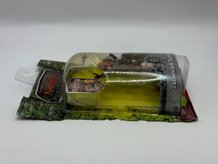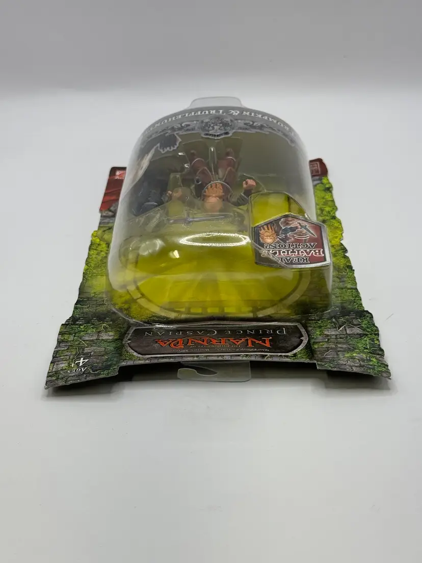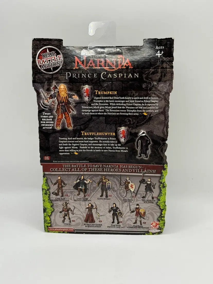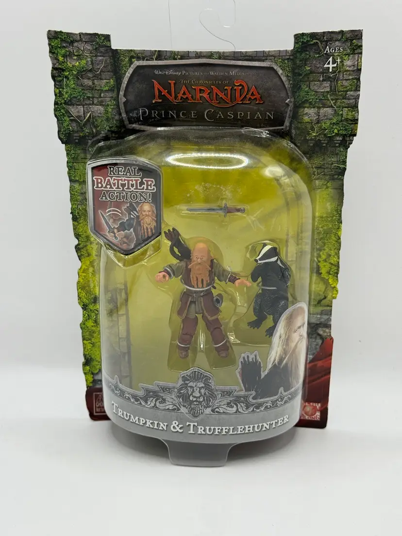 These Narnia Trumpkin and Trufflehunter action figures from 2007 are a must-have for any Disney or Chronicles of Narnia fan. Made by Play Along, they are original and licensed reproduction characters that are perfect for collectors or for playtime. The set includes both characters and is in great shape, ready for display or imaginative adventures.