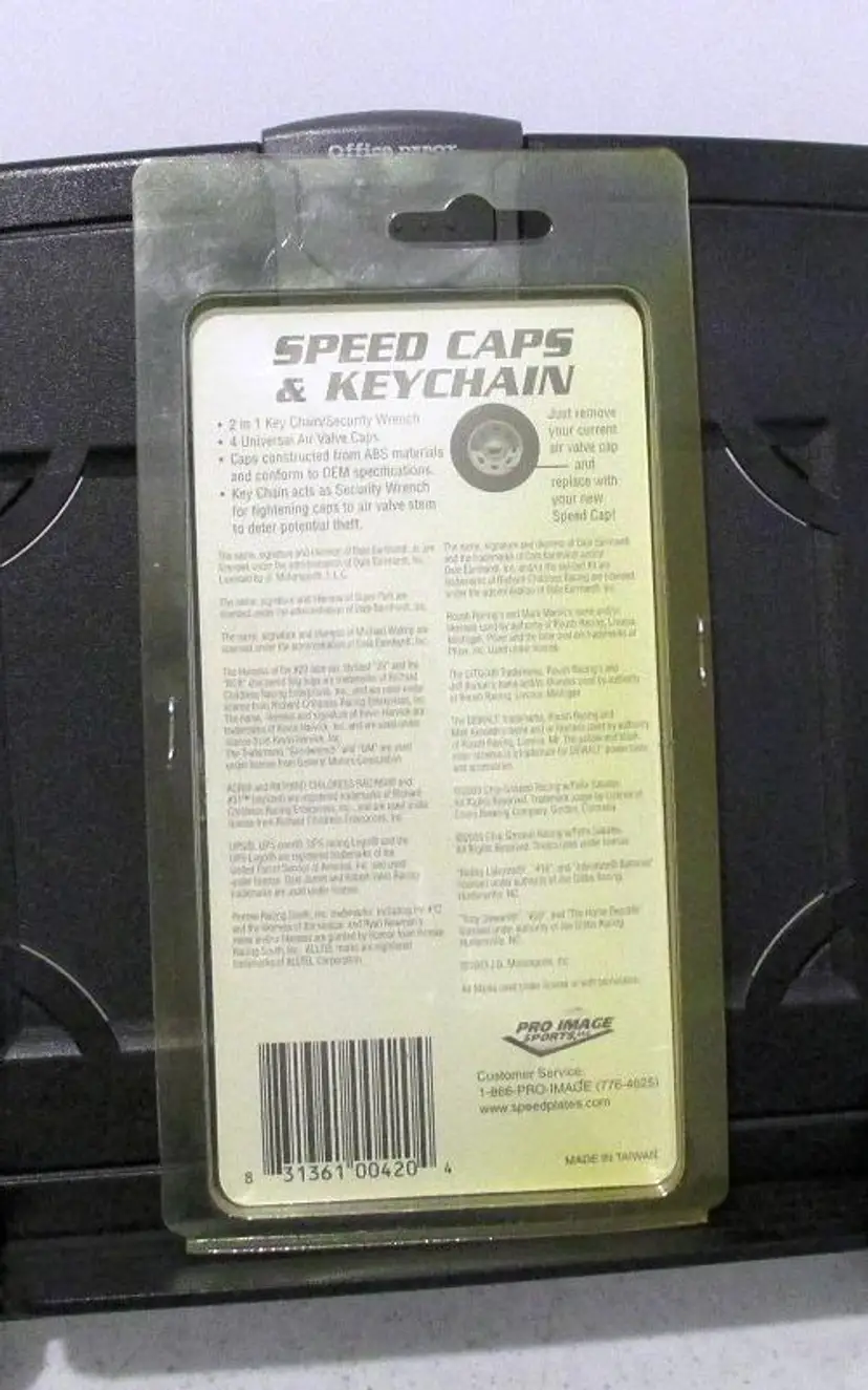 Pre-owned but still sealed. Packaging shows some wear and yellowing. Contents in new condition - never opened, unused. Set includes 4 universal air valve caps and a 2 in 1 key chain/security wrench (used for tightening caps on air valve stem). From a smoke-free home.